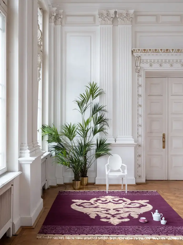 Material: Wool, SilkKnot Density: 100 knots/inch²Pile Height: 5 - 7mmTechnique: Hand-knottedCustom sizes and colors on requestThe Per Sempre collection draws inspiration from intricate historical embroidery patterns and traditional craftsmanship that, translated into a contemporary visual language, reflect Tapis Rouge's search for perfection and the spirit of innovation by playing with solids and voids.The collection's primary color palette is expressive, deep, and future-muted autumn shades. The Beatrice hand-knotted rug contains 70 % wool and 30 % silk. A 100 knots/inch² knot density shapes the drawing details; the pile is 5 to 7 mm height.