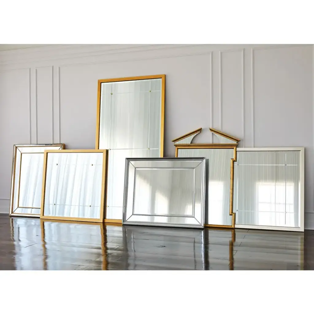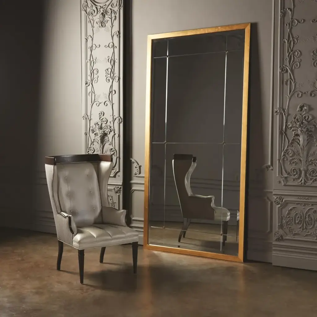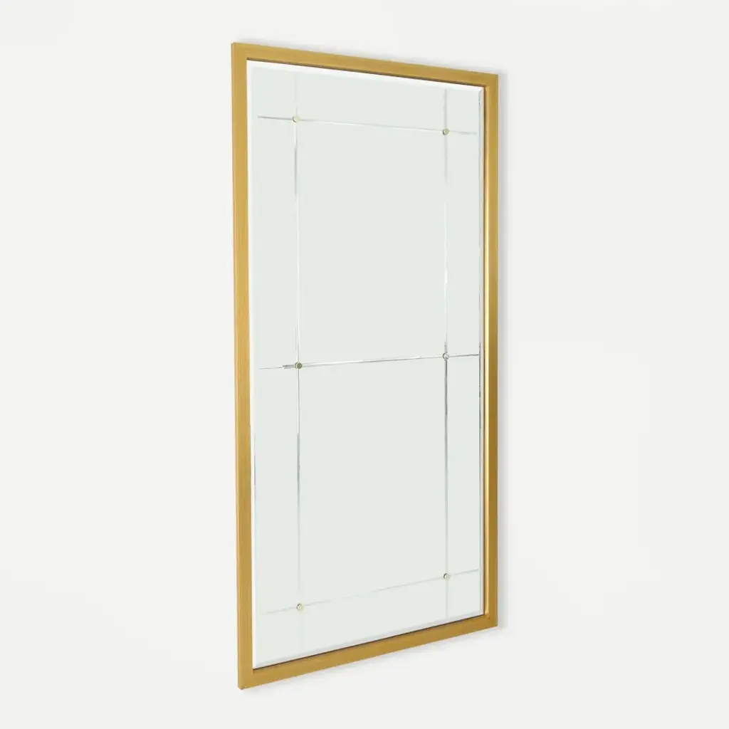 Mirror frame is made of solid pine with gold leaf finish. Decorative beveled cut pattern on mirror with brass clips. Available in two sizes. From a fashion forward perspective, Global Views offers accessories, furniture, statement lighting, and an assortment of rugs and mirrors to add beauty and joy to your home.