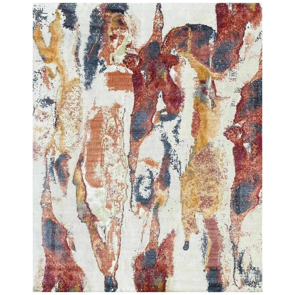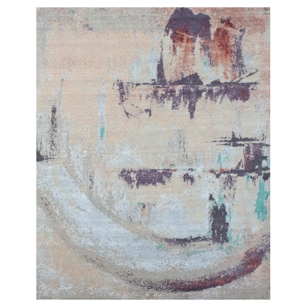 Nice contemporary abstract design rug with beautiful colors, entirely hand knotted with wool and silk velvet on cotton foundation.