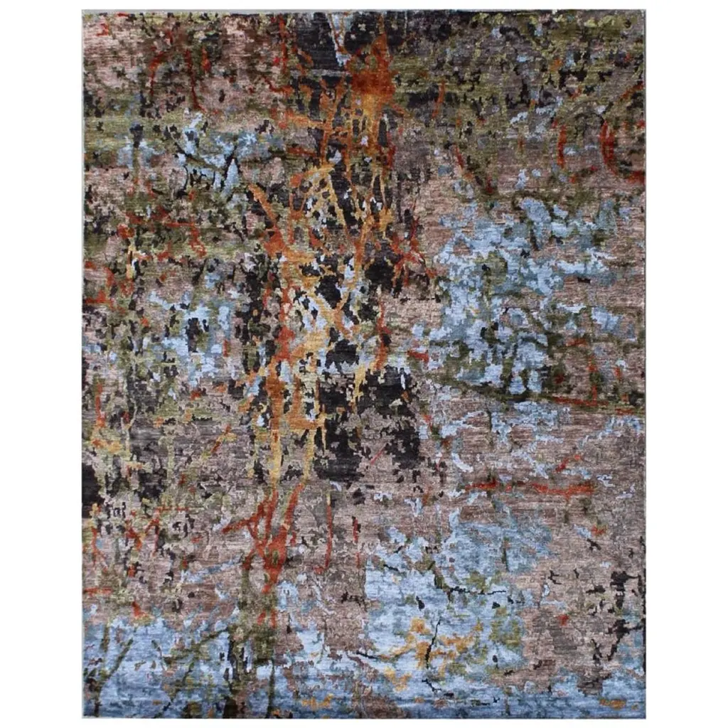 Nice contemporary abstract design rug with beautiful colors, entirely hand knotted with wool and silk velvet on cotton foundation.