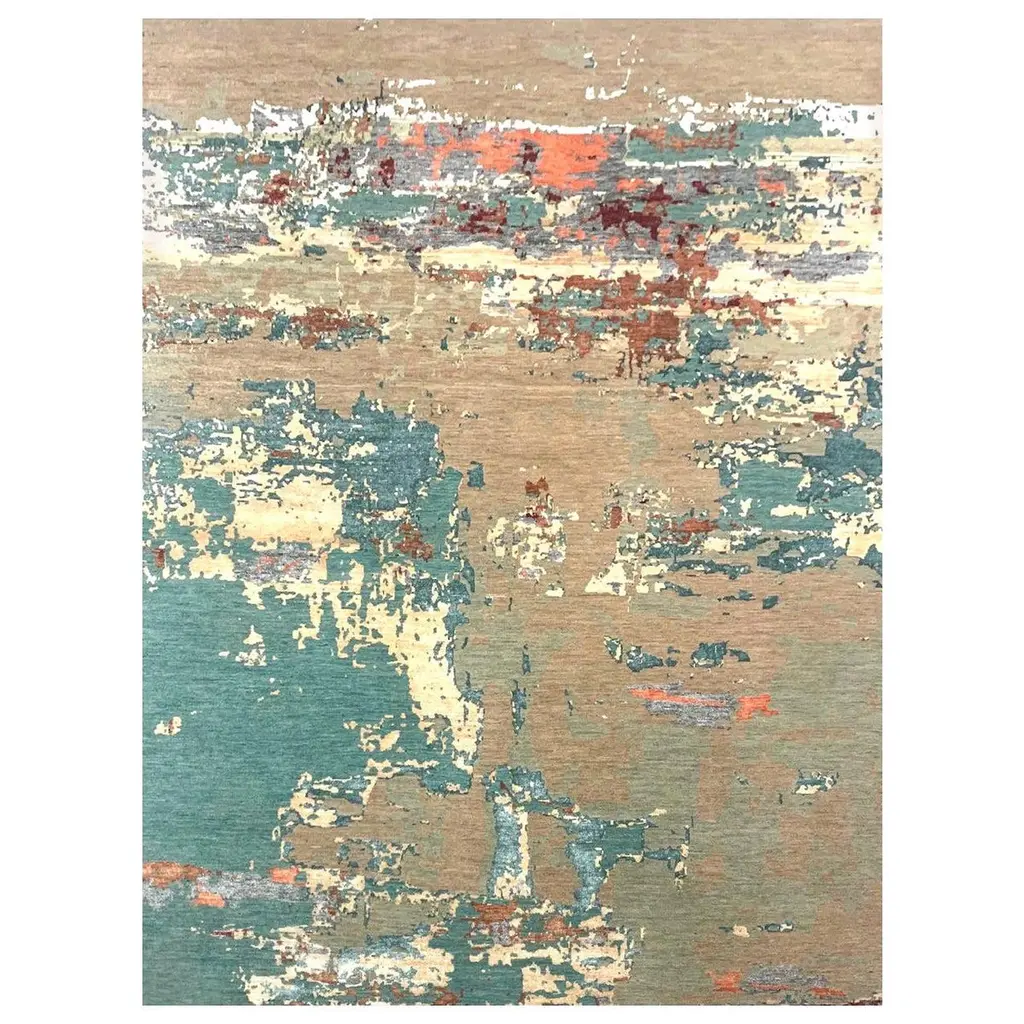 Nice contemporary abstract design rug with beautiful colors, entirely hand knotted with wool velvet on cotton foundation.