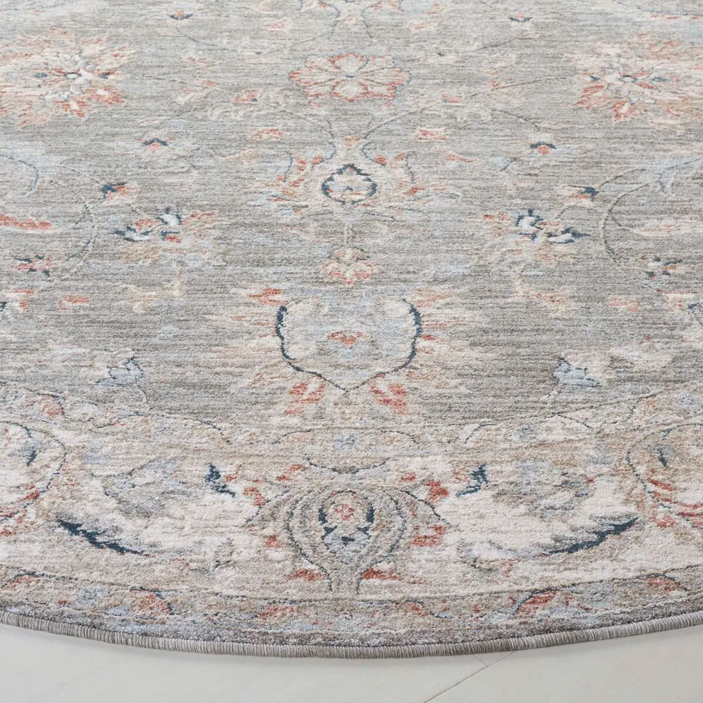 Step into elegance with our exquisite 6 foot 7 inch round Oriental rug. Imbued with a calming blend of grey and light grey hues, its traditional style creates a timeless focal point for any room. The intricate Oriental pattern is crafted using a power loomed technique, ensuring precision in every detail. Made from polyester, this rug combines beauty with practicality. Its 3/8 inch height offers comfort underfoot while maintaining its chic appearance. Proudly originating from Turkey, this piece brings a touch of sophistication and cultural richness to your home. Elevate your space with its enduring charm.