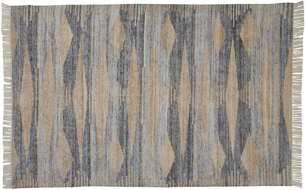 Collection: Beckett Colors: Gray, Tan, Silver Gray Construction: Hand Woven Material: Face: 100%PET Pile: Low Pile Pile Height: 0.25" Styles: Transitional,Moroccan,Bohemian & Eclectic Backing: N/A Made In: India Thickness: 0.25" Price Range: $$$$$ (Affordable)