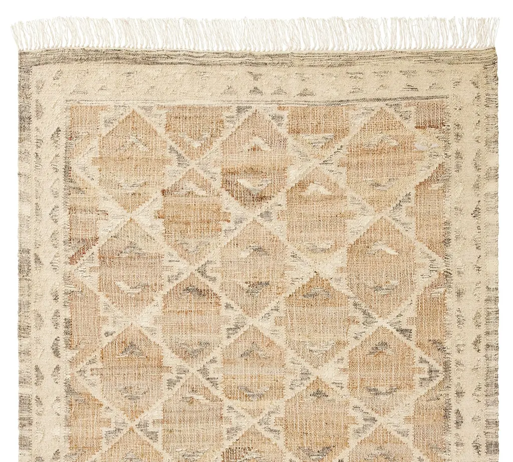 Collection: Beckett Colors: Tan, Gray, Ivory Construction: Hand Woven Material: Face: 100%PET Pile: Low Pile Pile Height: 0.25" Styles: Transitional,Moroccan,Bohemian & Eclectic Backing: N/A Made In: India Thickness: 0.25" Price Range: $$$$$ (Affordable)