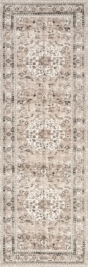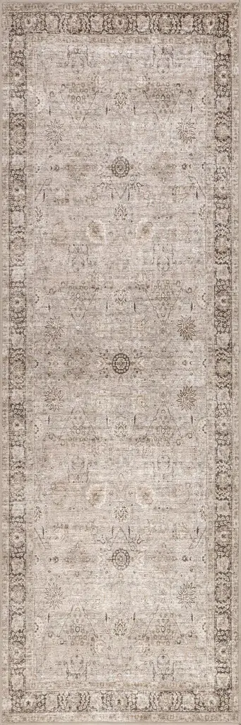 The Darling area rug, a unique collaboration between Becki Owens x Livabliss, beautifully marries updated traditional styling with practicality. Adorned with an artful traditional pattern that's been given a modern distressed twist, this rug is sure to elevate any space. Its neutral palette of natural khaki, clay and slate hues blends seamlessly into various decors while adding depth and texture. Woven in Turkey using resilient polyester, it can withstand high traffic areas and maintain its appeal over time. The no pile feature allows for easy maintenance - simply toss it in the machine on a cold delicate cycle and line dry. For optimal use and longevity, we recommend partnering this rug with a suitable pad. This piece showcases not only style but also versatility and durability, making it an ideal addition to your home.