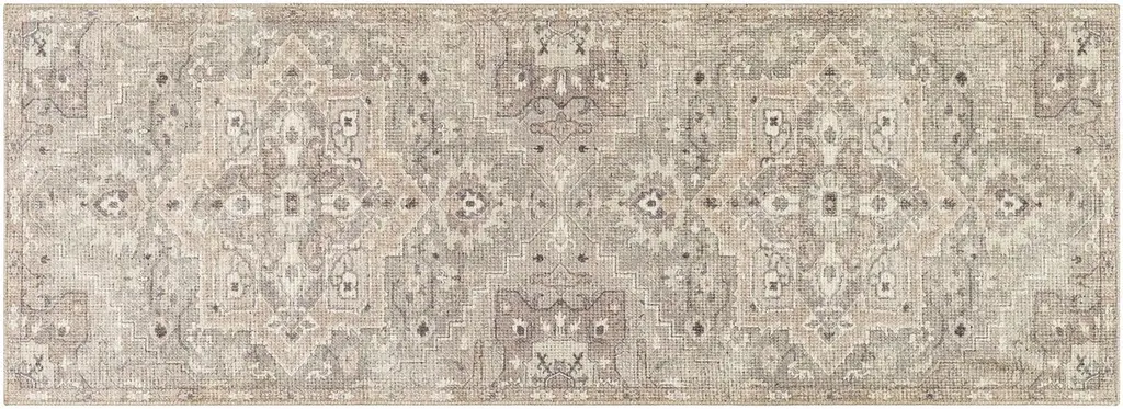 This medium-pile rugs elaborate traditional motif is rendered in a soft, serene palette, making it a welcome addition to any room where relaxation is a priority. A rug pad is recommended to help prevent slipping and extend the life of the rug.