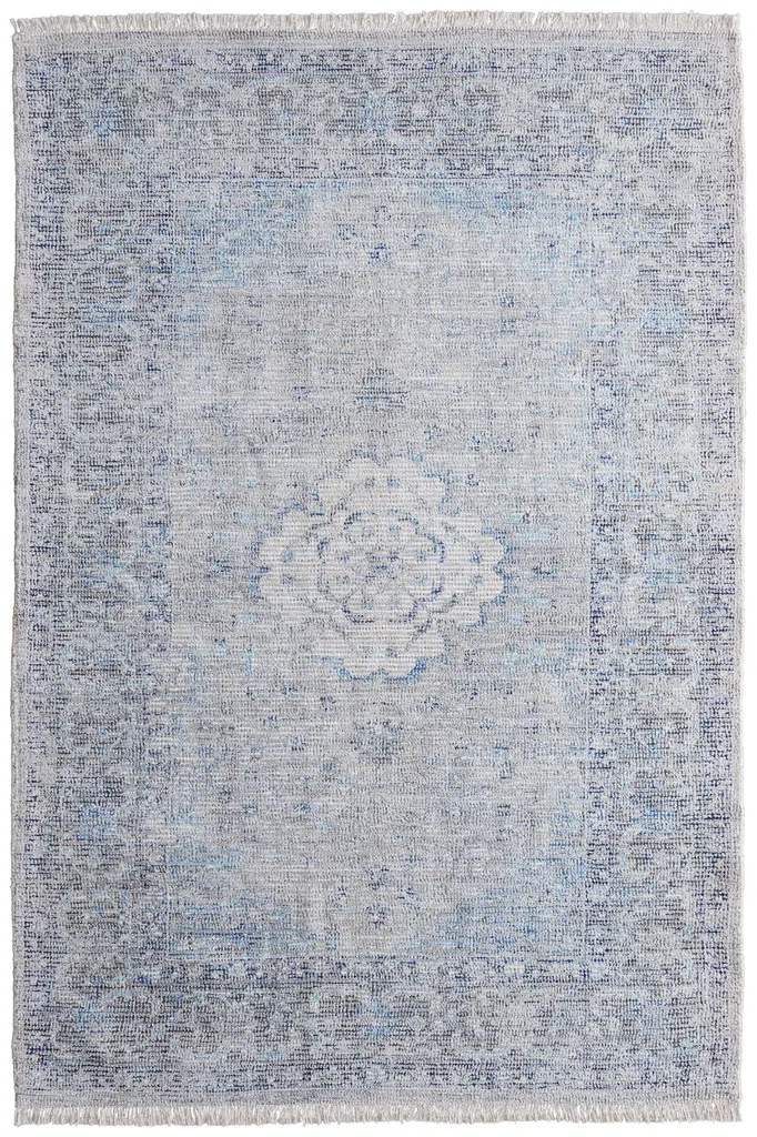 Set a foundation for timeless design with this beautiful handwoven rug. The rug's woolen blend offers a soft yet durable tread perfect for living areas or bedrooms while the cool blue tones can play to coastal aesthetics or offset a Scandi-inspired edit with an ornate pattern underfoot.