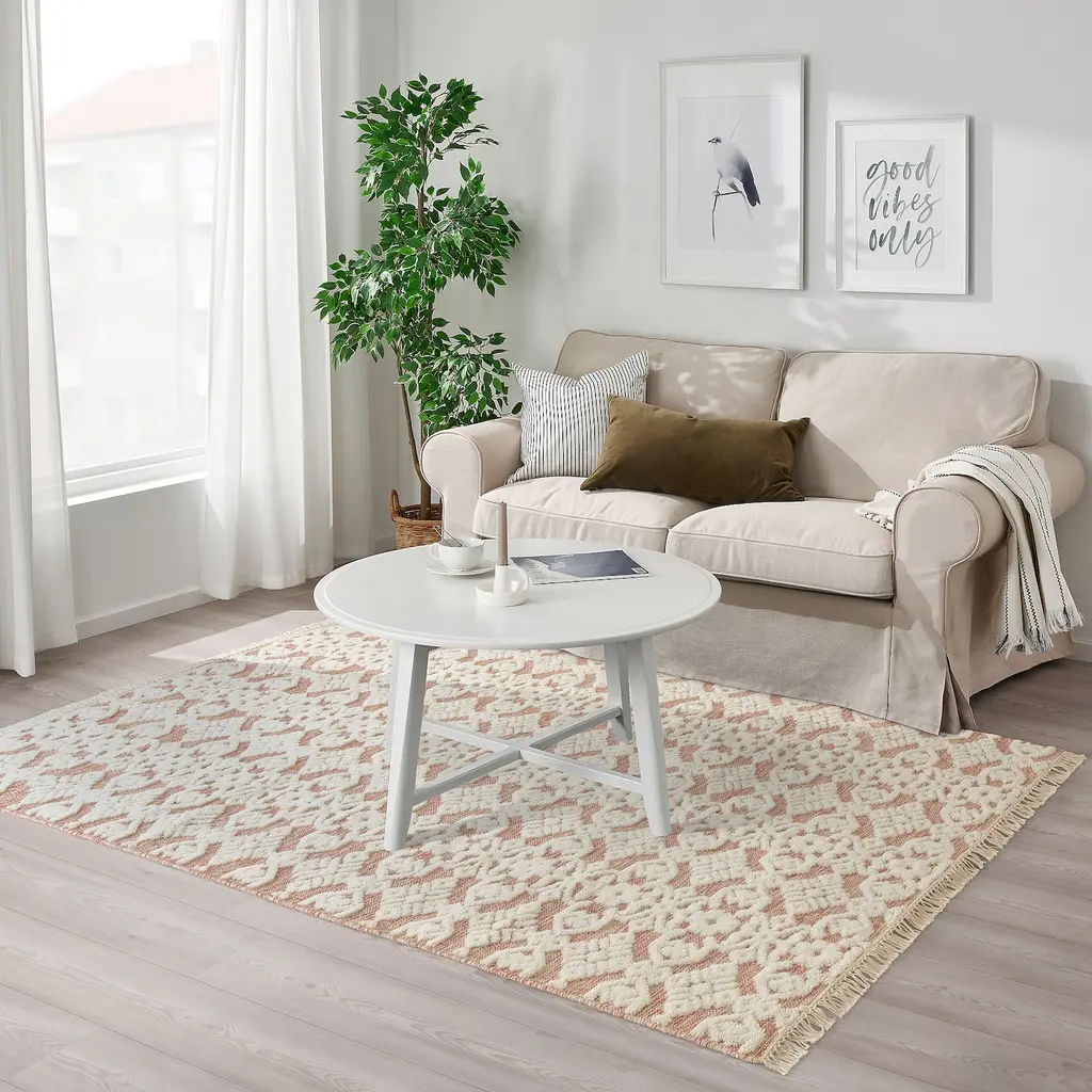 BEFODRAN Rug, high pile - red-pink/handmade 5 ' 3 "x7 ' 7 ". The rug is made of wool so it's naturally soil-repellent and very durable. Ideal in your living room or under your dining table since the flat-woven surface makes it easy to pull out the chairs and vacuum.