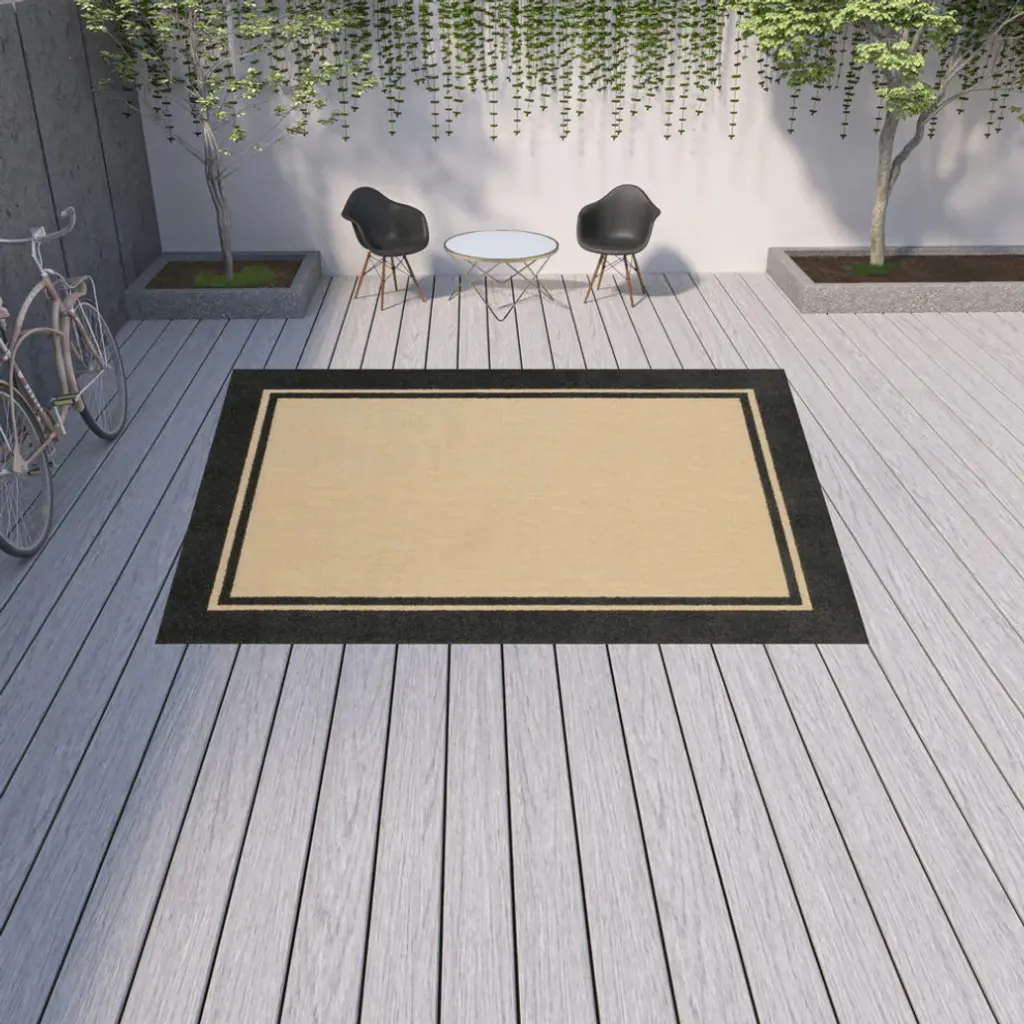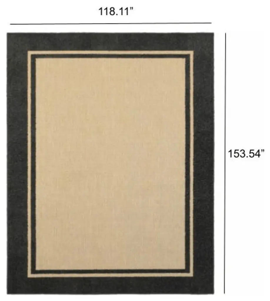 This beige and black indoor outdoor area rug, is a great way to add warmth to a room. This rectangle shaped rug flaunts a beige and black color that will be a great way to accent your space. Solid colors are versatile and will blend with any existing decor style. Place this area rug against a hardwood or tile floor and it will enliven your living space with style and sophistication. 1-inch H x 118.11-inch W x 153.54-inch D