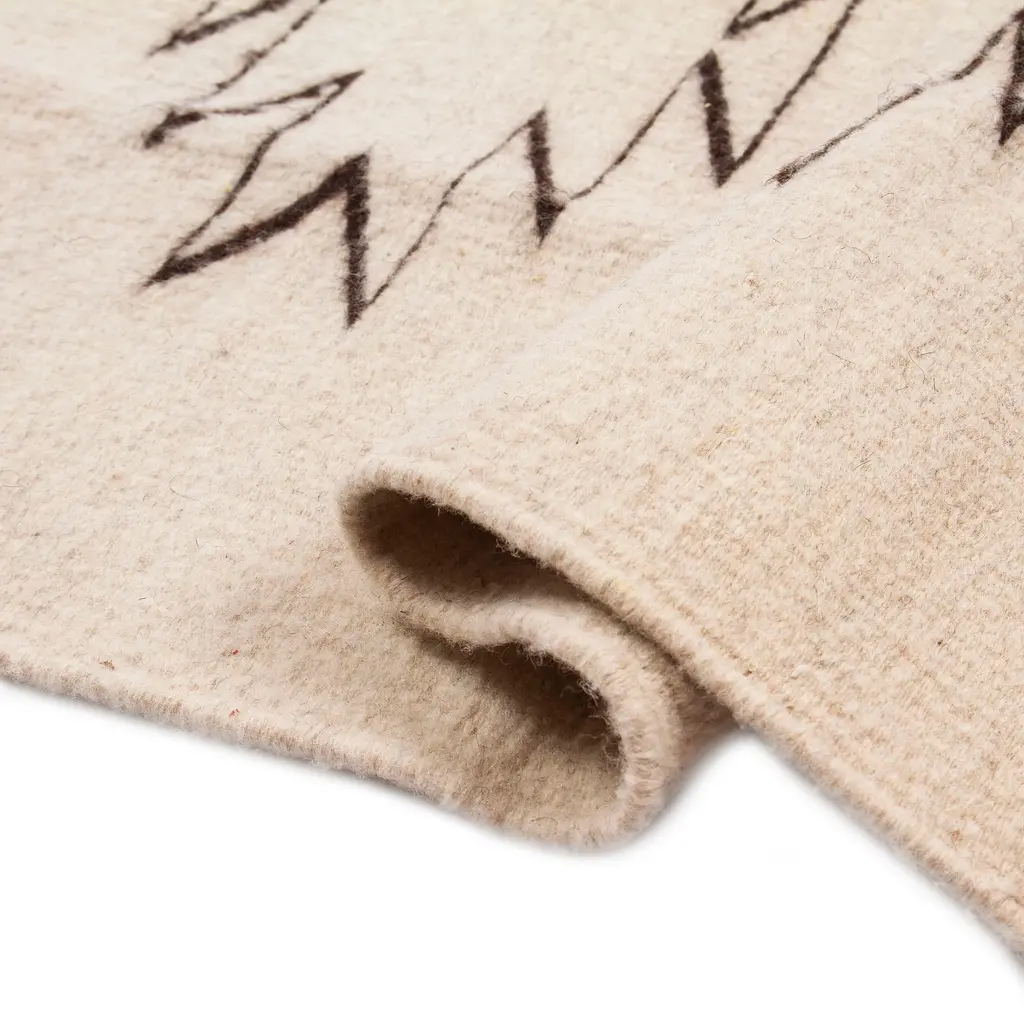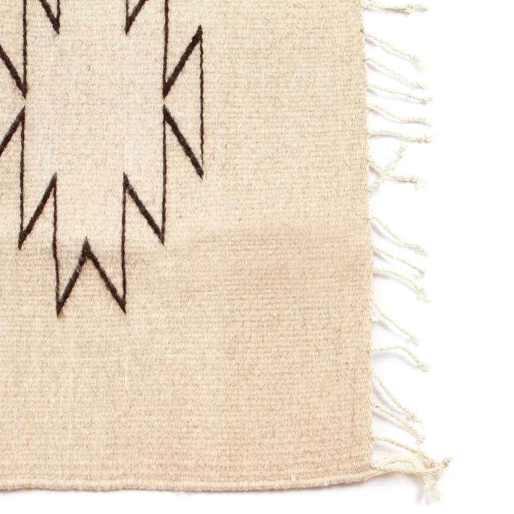 Discreet and refined, this Zapotec rug showcases Mexico's textile excellence in each handwoven detail. The Ruiz Bazan Family works with refined wool yarns in a palette of natural beige and brown hues, arranged in classic geometric motifs. The rug also has fringes, allowing a sophisticated look.