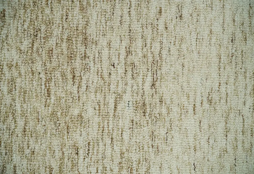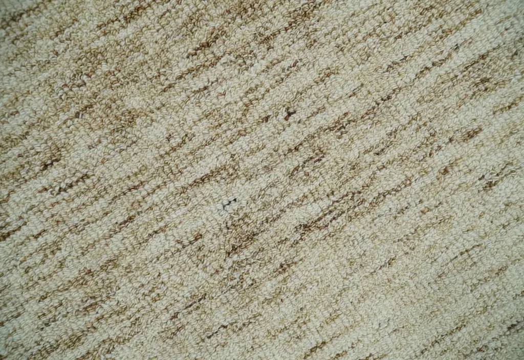 Beige And Ivory Shaded Solid Wool Hand Woven Multi Size Rug - 3X5