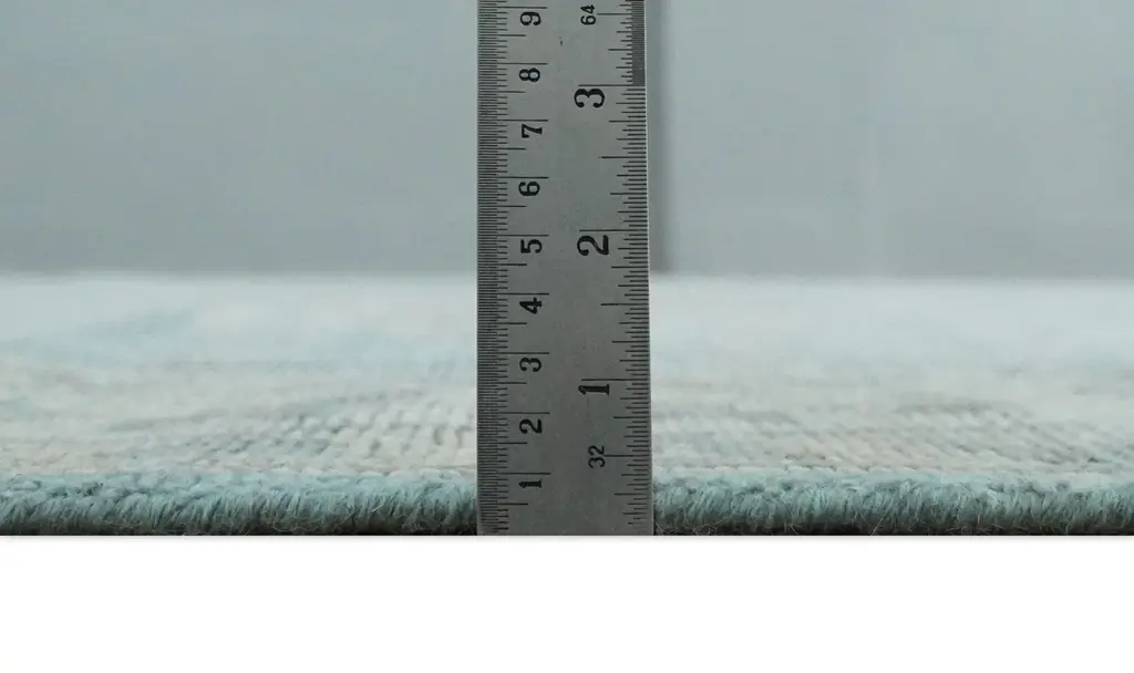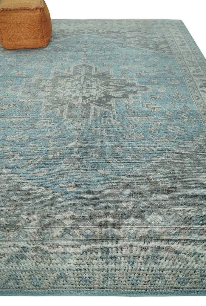 This Hand-Knotted Rug has been Made with Handspun Wool. The beautiful colors of the rug carry a legacy of the heirloom rug. The traditional Heriz-inspired design of the rug completes your space without making it look busy. Hand-Knotted rugs are durable and can last for decades if treated right. MADE TO ORDER IN 30-45 Days Hand-Knotted Made with Wool Color: Blue, Beige, and gray Made with 25 knots per square inch This specific rug is made in India, in the city of Bhadohi. Bhadohi is one of the biggest rug manufacturing cities. Carpet weaving in the region dates back to the 16th century during the reign of Akbar. The skilled artisans of Bhadohi have been carrying the tradition of rug-making for centuries. USERS GUIDE Avoid prolonged moisture Vacuum regularly and/or shake to remove dust Do not pull any loose threads. Use scissors to simply cut the ends Blot spills immediately with a white cloth. Harsh chemicals may damage or fade the rug Use rug protectors under heavy furniture