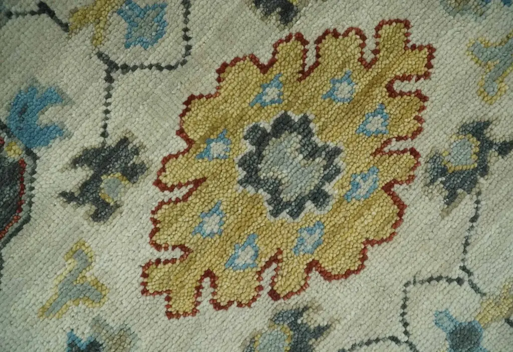 Beige, Gray, And Ivory Traditional Hand Knotted Oriental Oushak Multi Size Wool Area Rug - 2.6x14