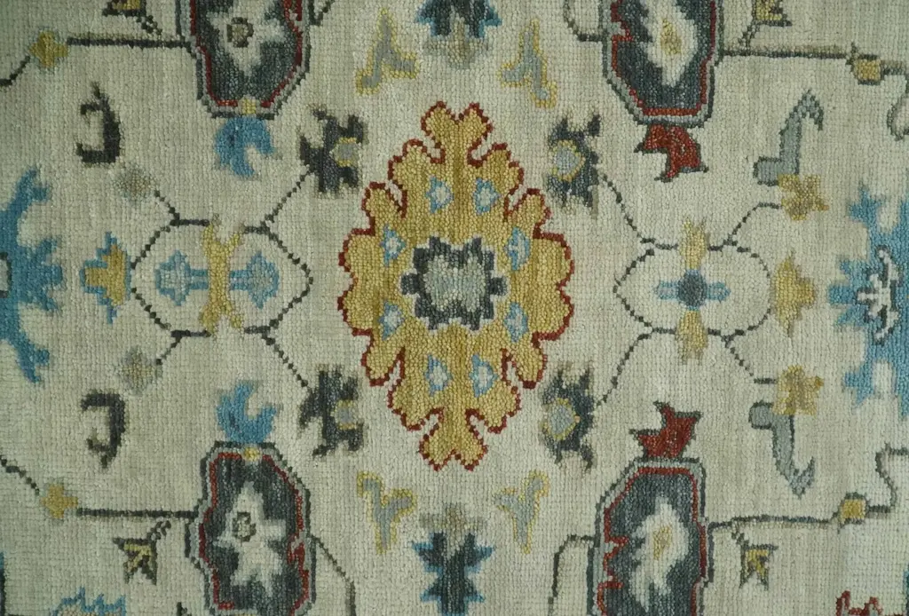 Beige, Gray, And Ivory Traditional Hand Knotted Oriental Oushak Multi Size Wool Area Rug - 2.6x15