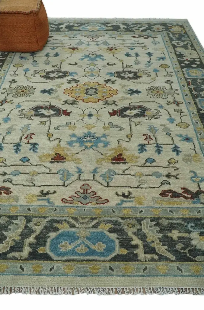 Beige, Gray, And Ivory Traditional Hand Knotted Oriental Oushak Multi Size Wool Area Rug - 2.6x6