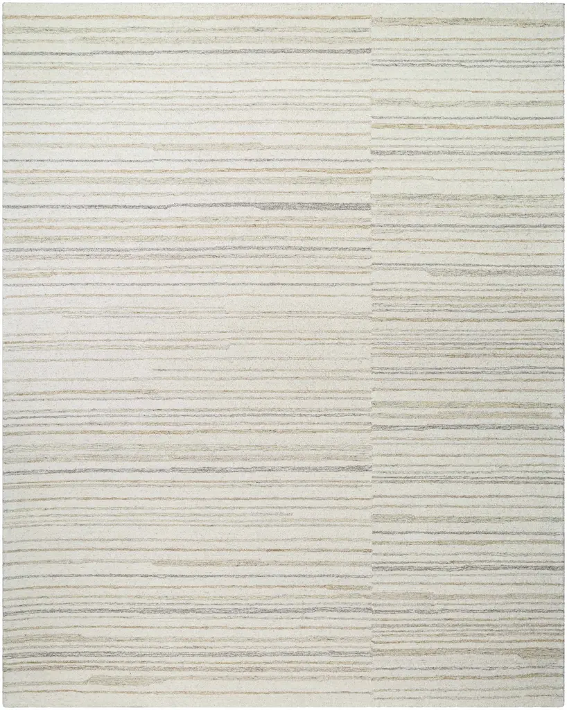 Beige Modern Tibetan Wool Silk Blend Rug - 12' x 15'