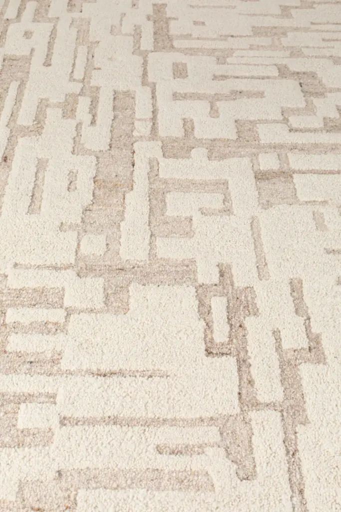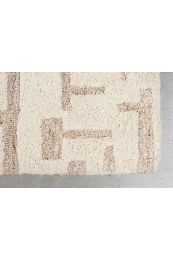 With a subtle beige palette, its pattern of stripes and blocks creates an interesting visual pattern. The handwoven technique brings a delightful relief, making this rug a versatile fit for any interior. Embrace the artistry that lies beneath your feet with the Hills rug.