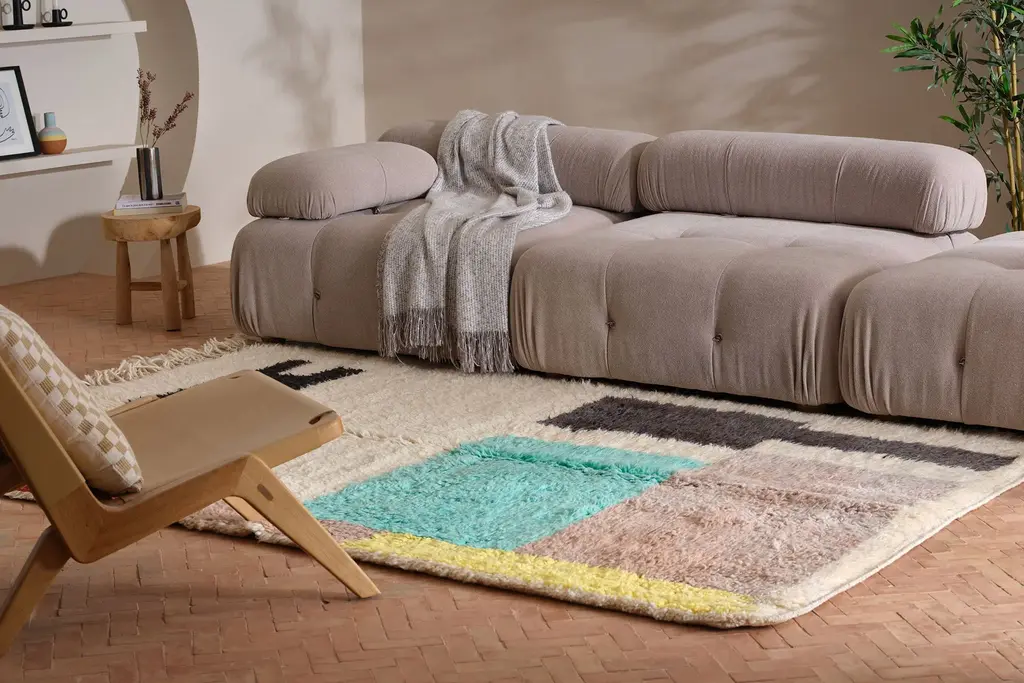 One-of-a-kind new rug, hand-knotted near the small city of Boujad in the Chaouia-Ouardigha region of Morocco