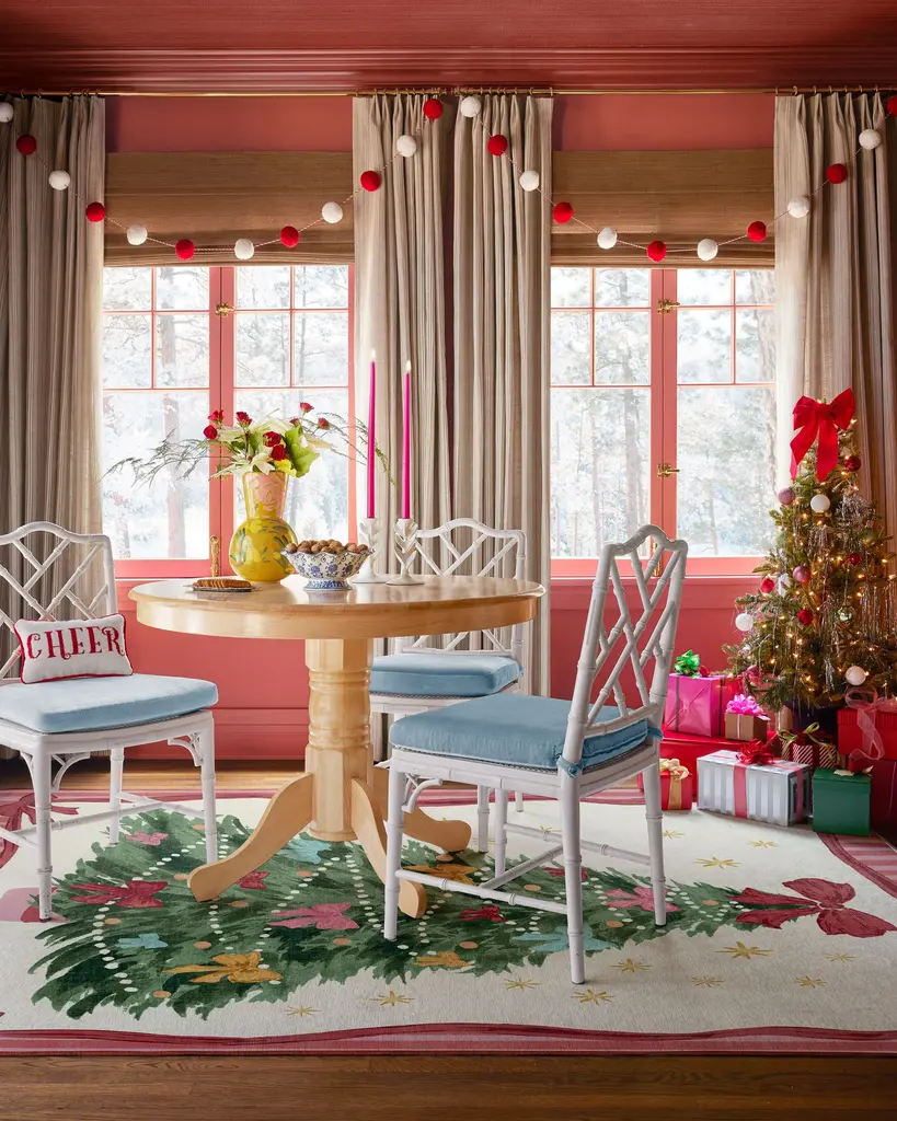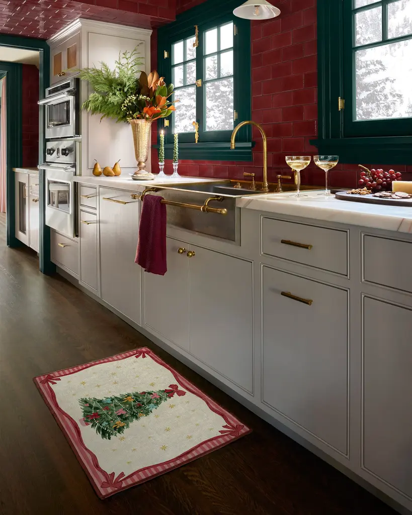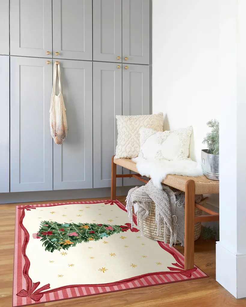 Add a bow (or several) to your holiday floor decor. The Bella Bows Multicolor Rug is riddled with unapologetic festivity, standing out as a seasonal statement piece. Decorate for the holidays with the perfect adornment of vibrant hues juxtaposed against a bold Christmas tree backdrop. Water-resistant, stain-resistant, and fully machine-washable. Colors may vary by device and lighting.