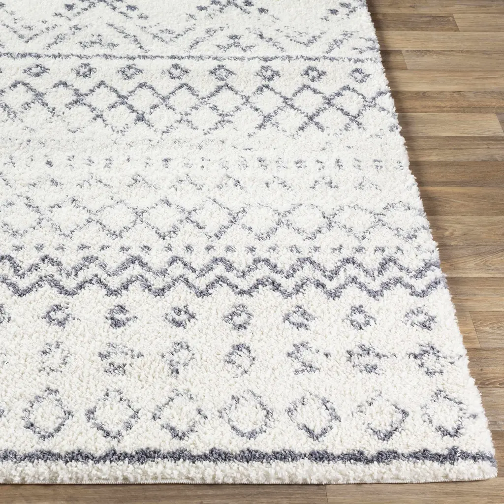 Collection: Benezett Colors: White, Gray Construction: Machine Woven Material: 80% Polypropylene, 20% Polyester Pile: Plush Pile Pile Height: 1.18" Styles: Transitional,Bohemian Made In: Turkey Thickness: 1.38" Price Range: $$$$$ (Affordable)
