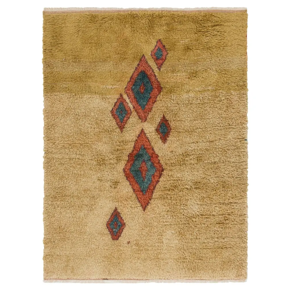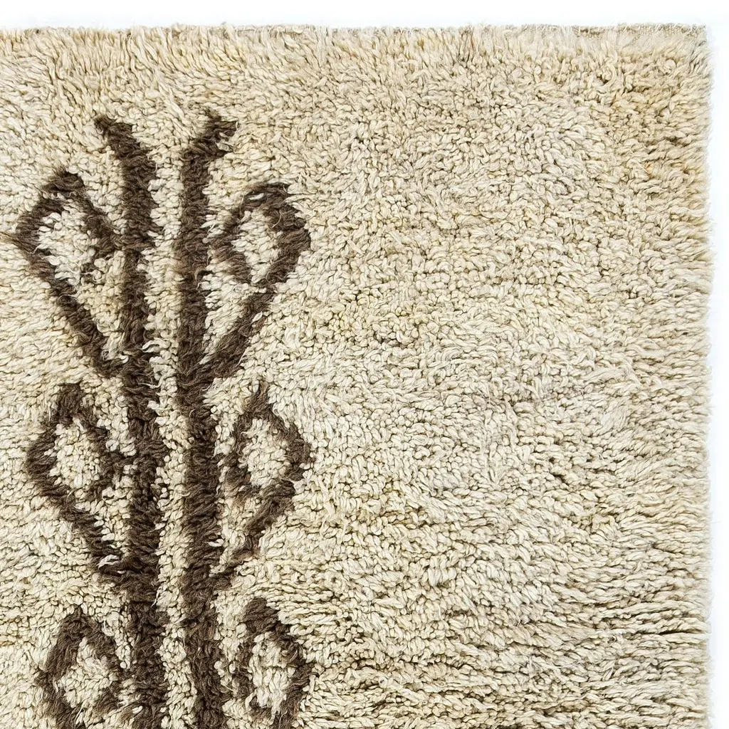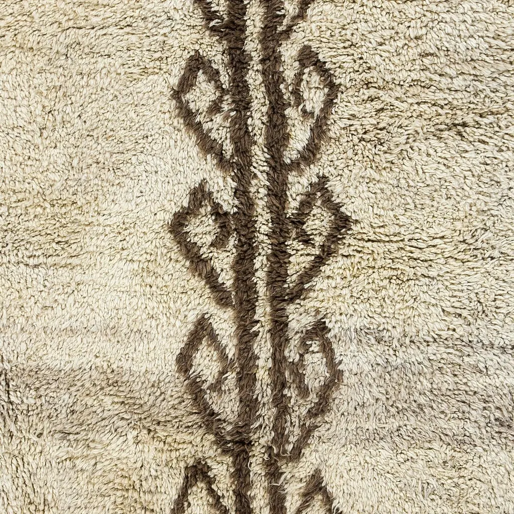 Transform your space with the understated luxury of our Moroccan-style hand-knotted Tulu rug, inspired by the heritage-rich designs of the Beni Ourain tribes. This rug is a celebration of craftsmanship and tradition, entirely handmade by skilled artisans using 100% natural wool, offering both exceptional quality and timeless character.What makes this rug special?Tulu rugs are known for their plush, deep pile and irresistibly soft texture. Originally used in the cold mountainous regions of Anatolia and North Africa, Tulu rugs were crafted to provide warmth, comfort, and coziness in everyday life. Today, they are cherished for their unique, tactile quality and relaxed yet elegant aesthetic. With its organic softness and hand-tied knots, this rug brings not just decoration—but a story—into your home.Whether you're styling a modern loft, a serene minimalist bedroom, or a cozy reading nook, this piece will anchor your space with texture, tradition, and soul. Its clean lines and contemporary interpretation of tribal design make it a versatile addition to nearly any interior style—boho, Nordic, Japandi, or eclectic.Product Details:Material: 100% Natural WoolTechnique: Hand-knotted by skilled artisansConstruction: Fully handmade using traditional methodsFeel: Soft underfootOrigin: Handmade by master weavers in a traditional workshopDurable and made to last for yearsCare: Vacuum regularly; professional cleaning recommendedLooking for a different size or color?We offer custom orders! Whether you need a different size, pile height, or a unique color combination, we are happy to create a bespoke rug just for you.Feel free to message us with your requirements – we’d love to help you bring your vision to life!