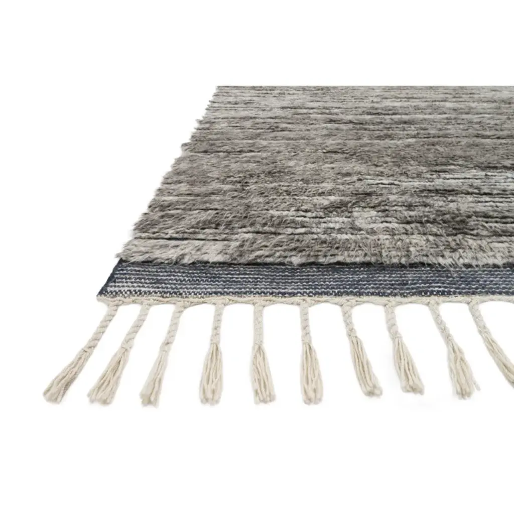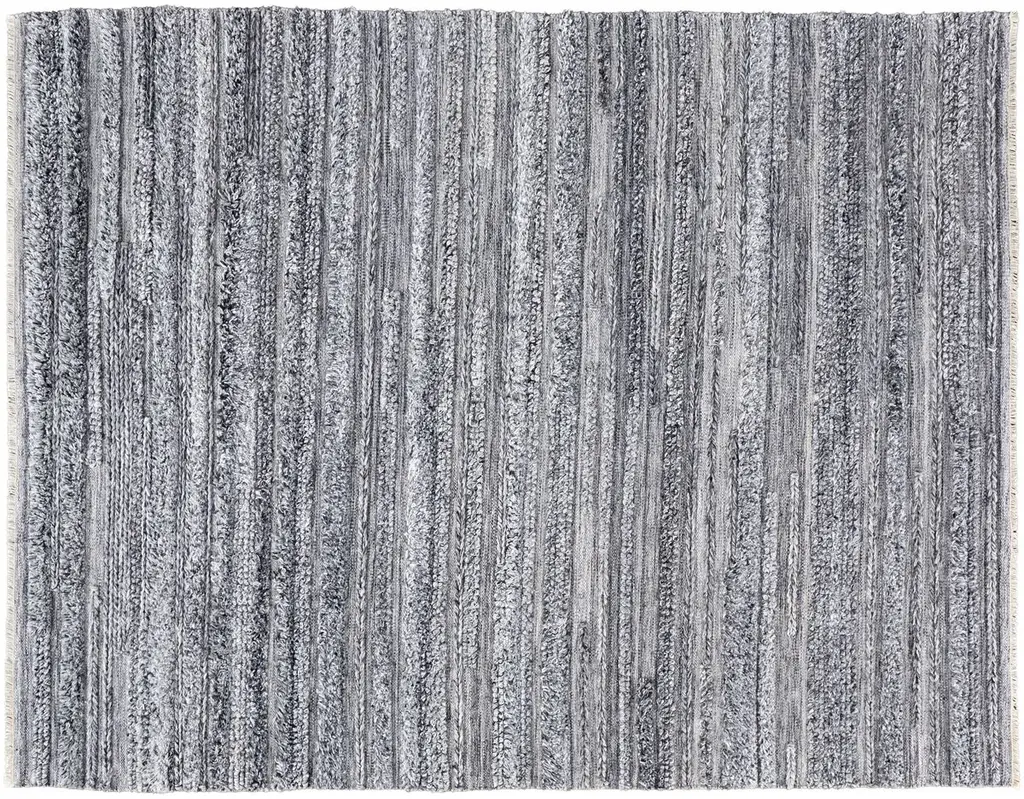 Get an instant refresh. Roll out this area rug for a bright look on your floors thanks to its understated striped design and high contrast colors. Hand-knotted in India from a blend of wool and nylon, it features wool's natural resilience, so it stands up to regular use. This rug features a striped design with bands of gray. Knotted fringe layers in a textured bohemian element. A 0.5'' pile height helps this rug soften your floors while staying easy to care for – just spot clean as needed.