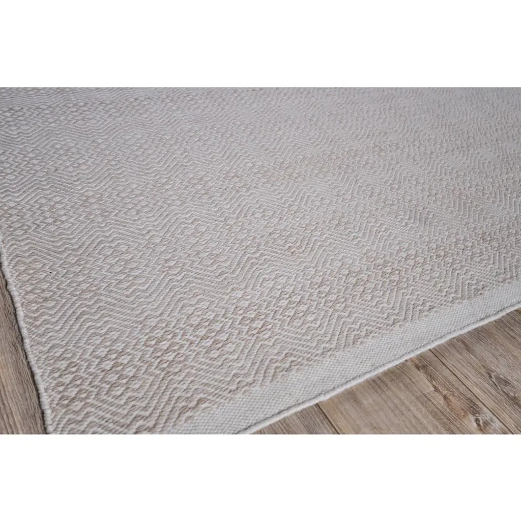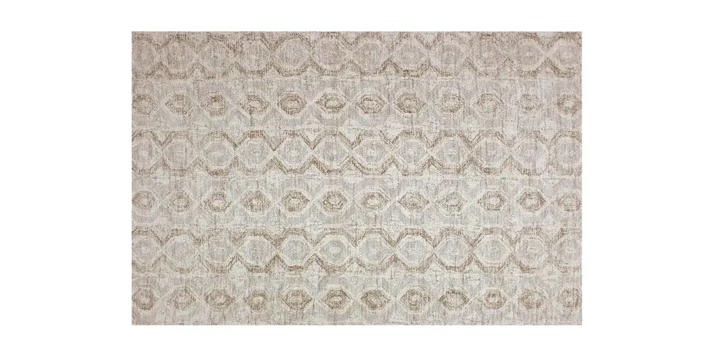 Rug swatch available! To order, choose SAMPLE in the size drop-down.The classic diamond shape is reinvented in a lively motif on the 6'x9' Bennett rug. Bold and modern, the small-scale pattern is finished in timeless shades of light beige and ivory. Handcrafted from durable performance PET fibers, this effortlessly livable rug is an easy choice for your indoor or outdoor living space.