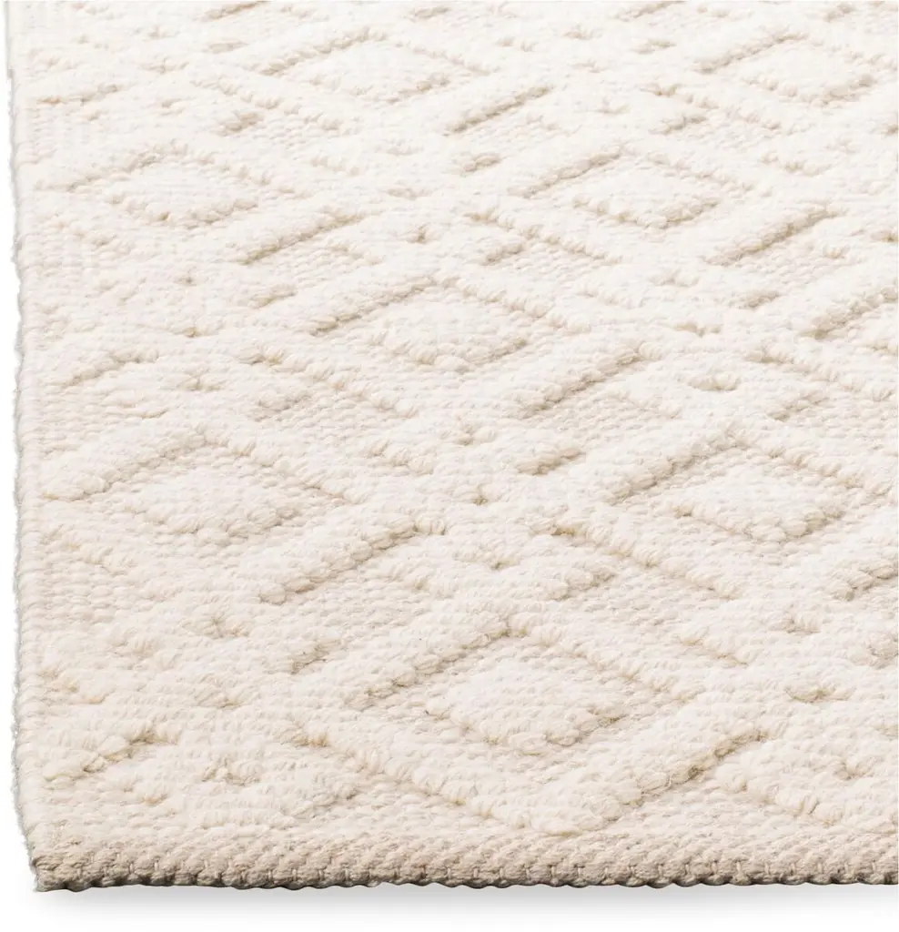 Rendered in a versatile ivory hue, this rug's handwoven blend of fibers and tonal design with a high-low pile create a wonderful texture underfoot. We recommend a rug pad to extend the life of your rug and keep it securely in place.