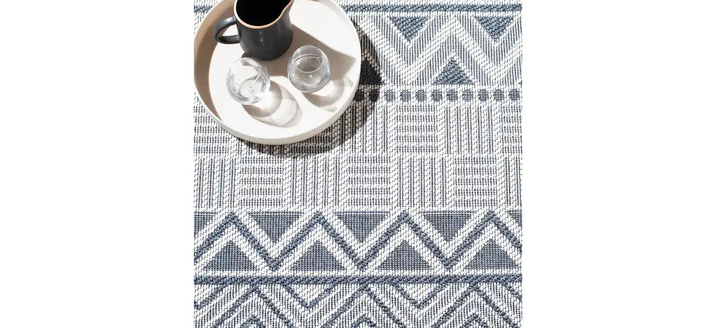 High style interior home design comes to outdoor living areas with Bermuda Geometric Indoor/Outdoor Rugs. Beautifully detailed designs and a richly textured weave made Bermuda Geometric area rugs an elegant addition to the backyard patio, deck, front porch, or lanai. Bermuda Geometric is weather-resistant, stain-resistant, and resistant to mold, mildew and fading from the sun.