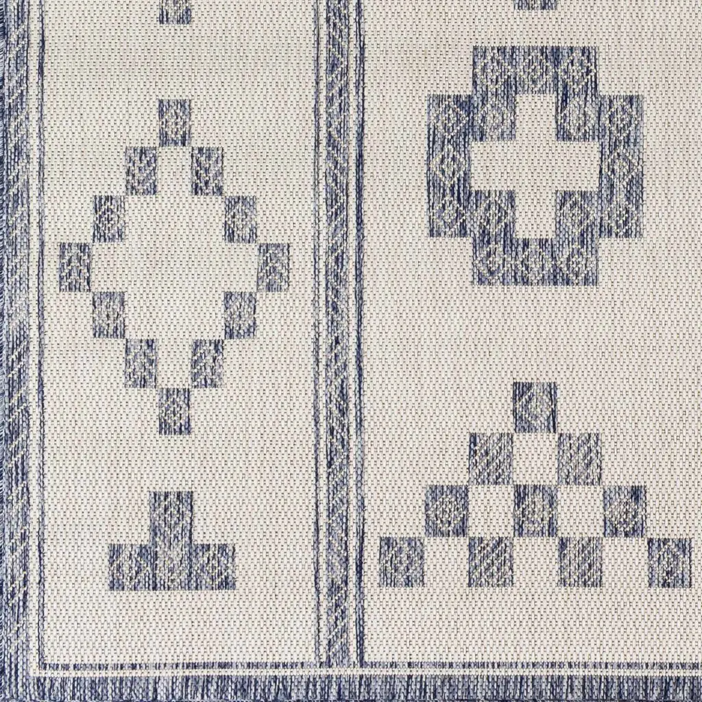 Collection: Besao Colors: Blue, Navy, Off White, Pale Blue, Tan, Taupe Construction: Machine Woven Material: 100% Polypropylene Pile: No Pile Styles: Transitional,Bohemian Outdoor Safe: Yes Made In: Turkey Thickness: 0.16" Price Range: $$$$$ (Most Affordable)