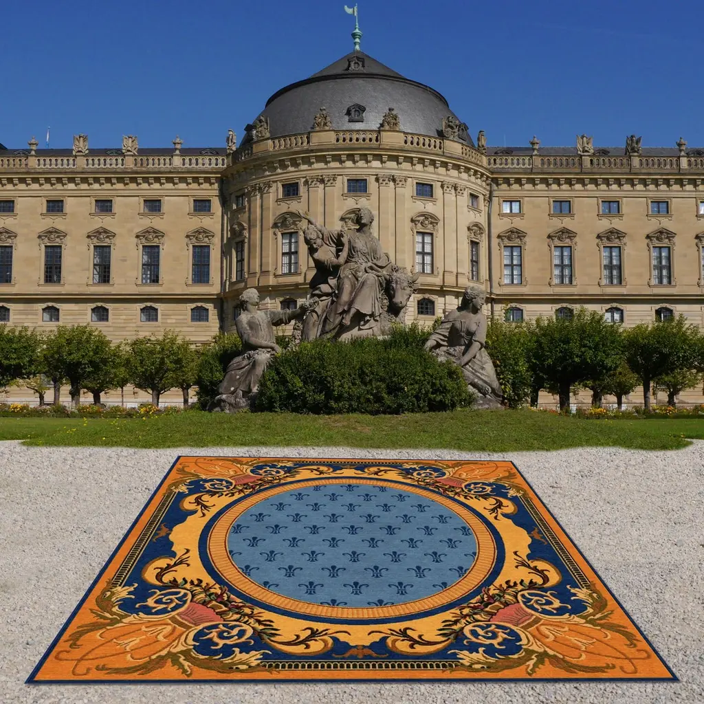 This neoclassical rug is showing a typical 1920´s Spanish style.We produce these rugs on order in requested size and color. The color combinations can be defined by RAL or Pantone color charts.The rug is produced in Tibetan highland wool. Size of this rug is 14 x 10 ft. Delivery after placed order is 16 to 17 weeks.• Beautiful new rug • All hand knotted• Hand spun wool• Condition: Excellent, new rug, • Land of origin: Nepal (Due to COVID the production time may be longer) Our rugs are shipped from Germany.