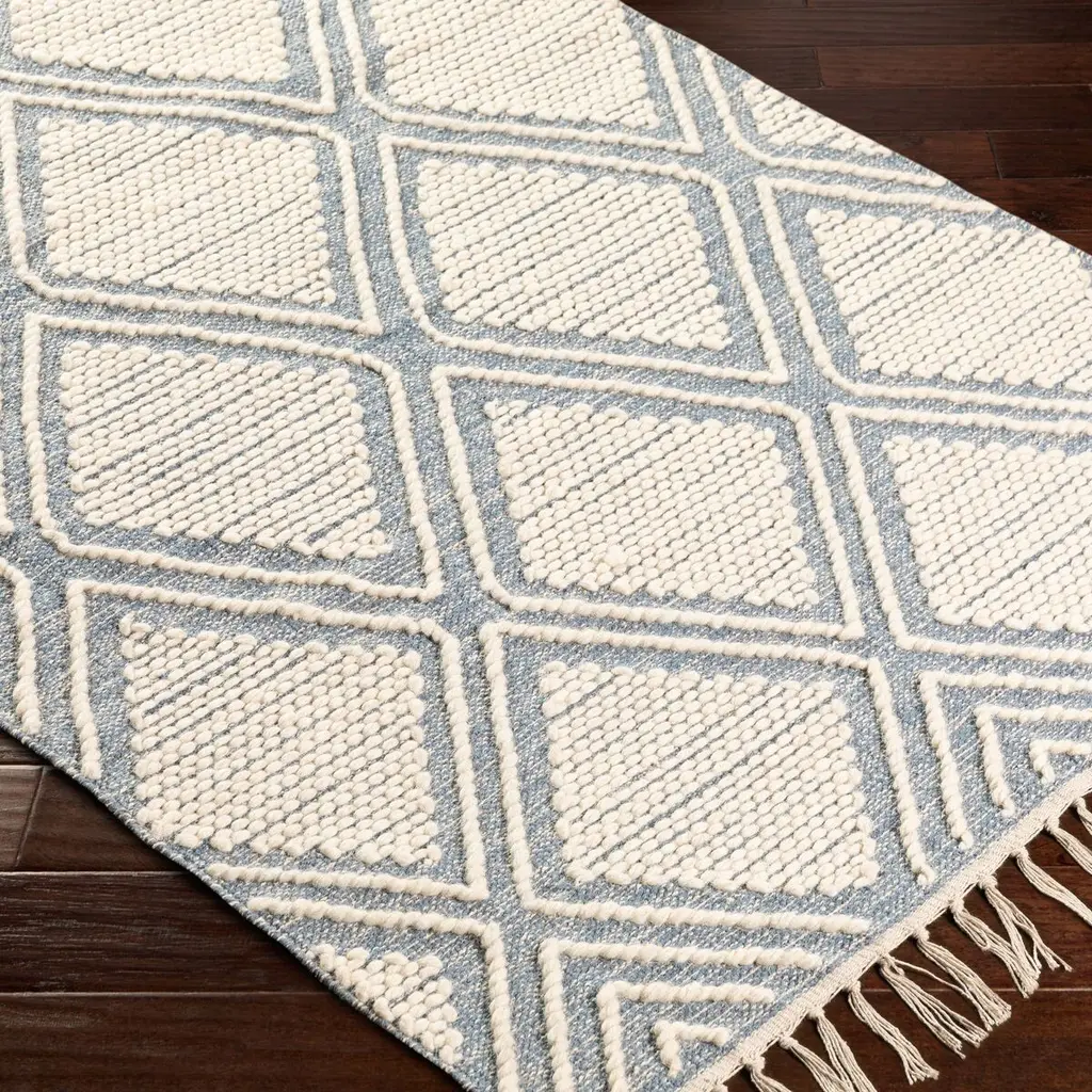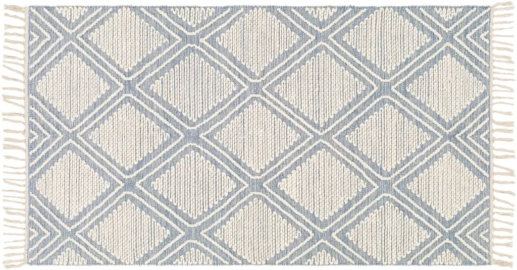 The high-low texture of the geometric motif is a testament to the craftsmanship lavished on this handwoven rug. The four-inch-long fringe adds to the artisanal allure. A rug pad is recommended to prevent slipping and extend the life of the rug.