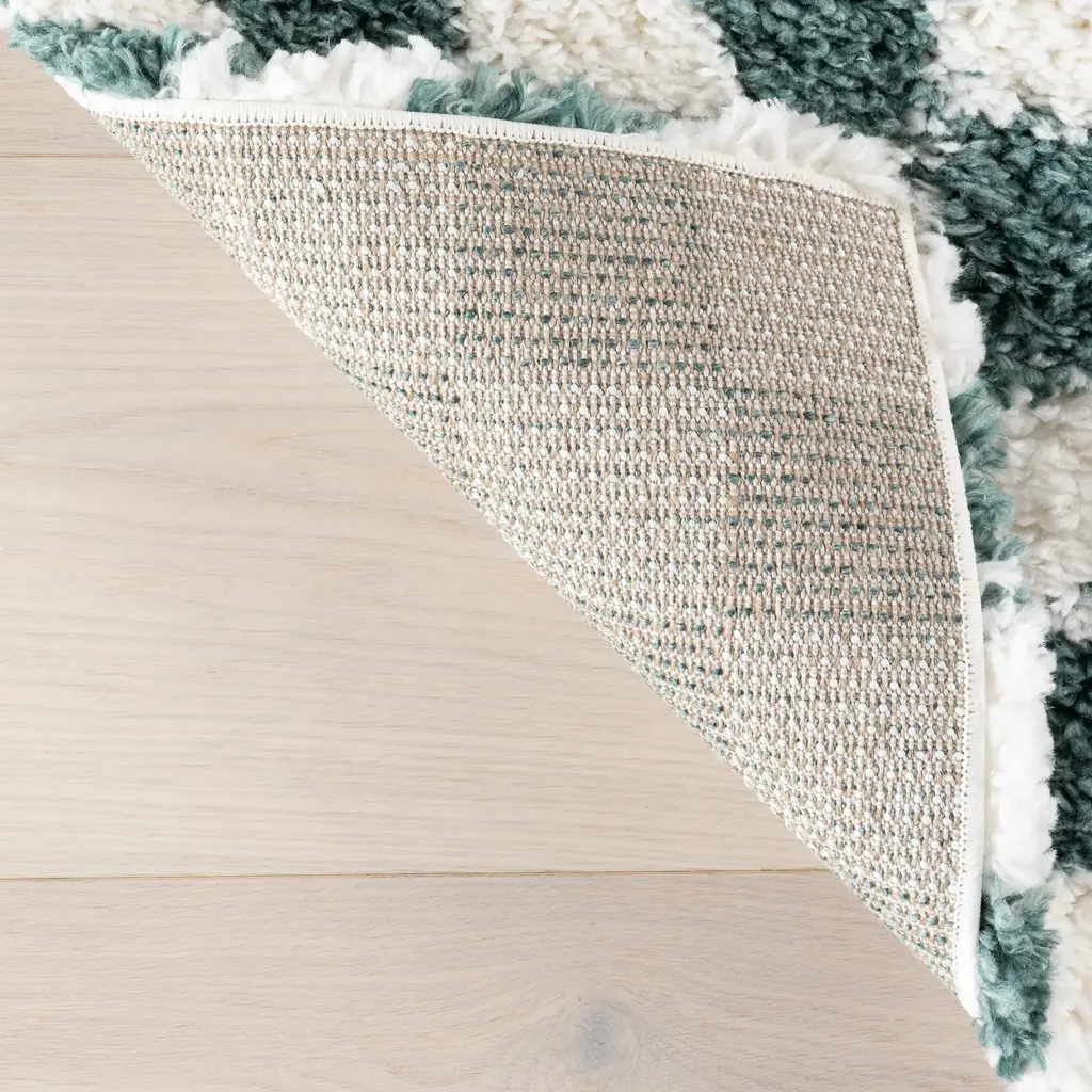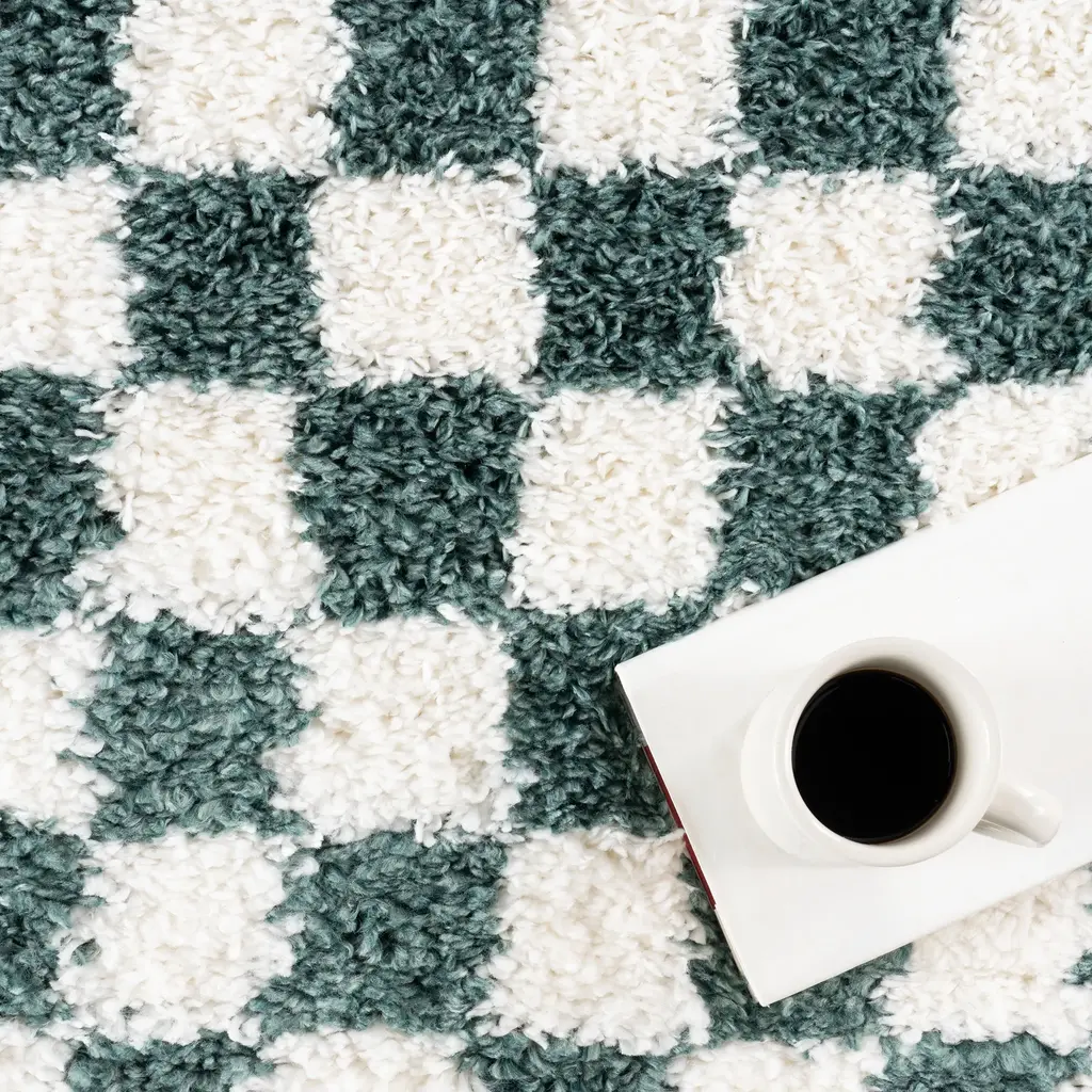 Bettie Retro Checkered Shag Rug | Green - 2' 8" X 8'
