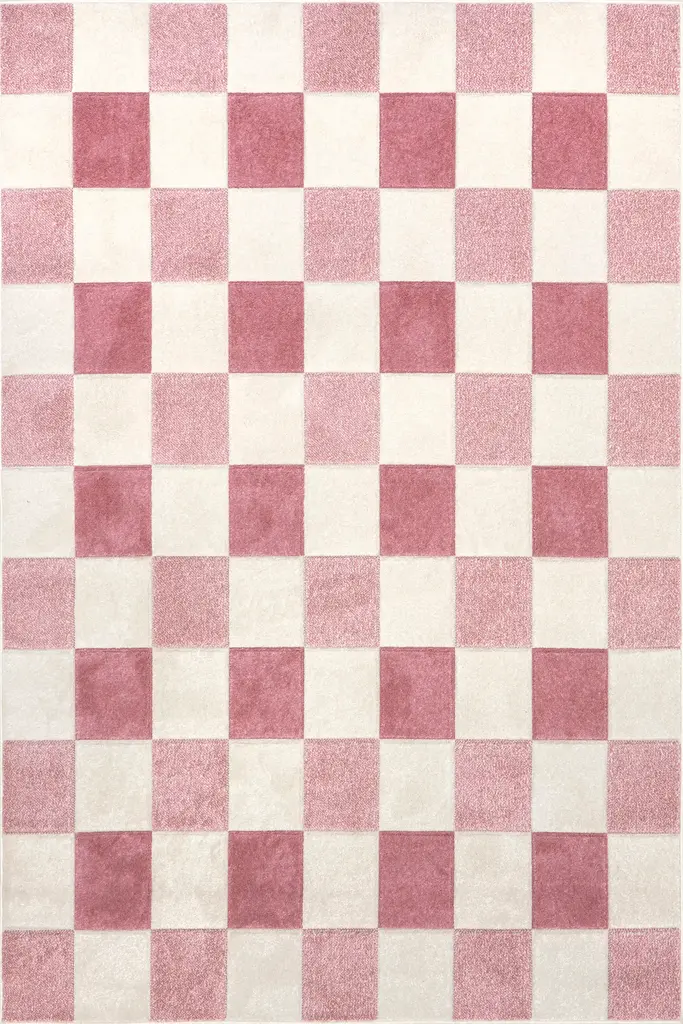 Bettie Retro Checkered Shag Rug | Pink - 3' X 5'