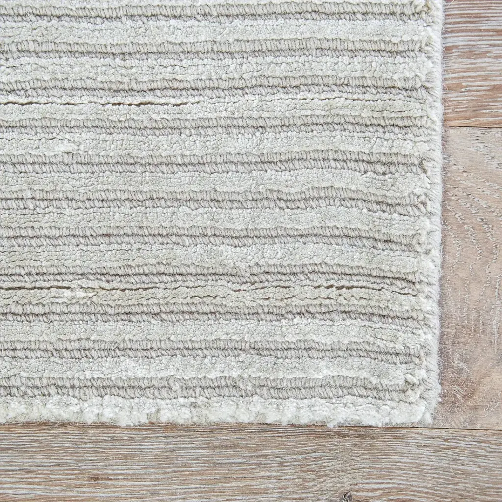 This sleek hand-loomed area rug boasts a lustrous tone-on-tone light gray colorway with texture-rich stripes creating a ridged high-low feel. In a soft combination of wool and viscose, this neutral accent lends versatile style to modern homes. Hand-Made Quality: hand loomed by artisans in India for notable durability and qualityLustrous Durability: made of 50% viscose and 50% wool for shimmering durabilityTextured Pile: the cut and loop pile creates a soft, ridged feel and luxurious styleCare and Cleaning: vacuum regularly without beater bar; professionally clean onlyRug Pad Recommended: prevent bunching and slipping with a rubber-backed, non-slip rug pad Jaipur produces a extensive range of rugs, including flatweaves, naturals, transitional and modern collections. Design is a core passion for Jaipur and spills out in bold colors, distinctive styles, and fashion-forward trends.