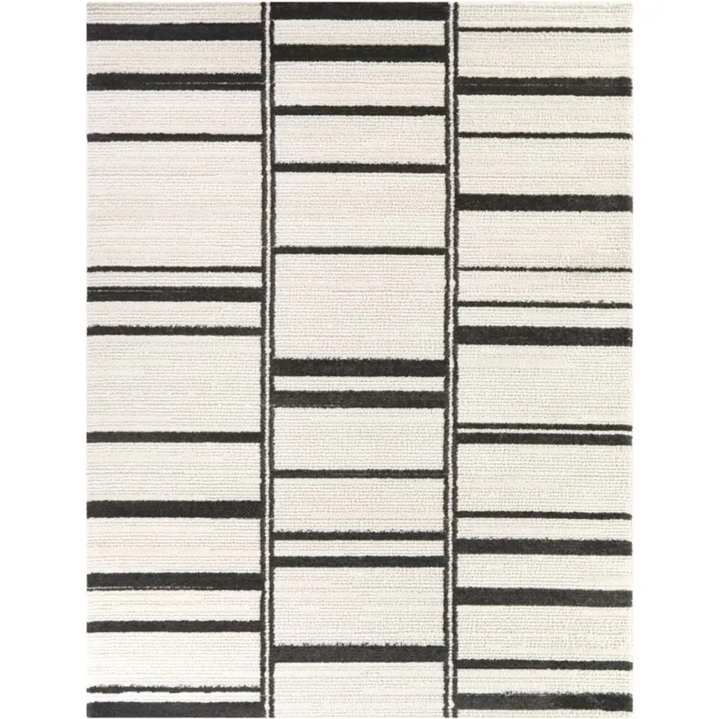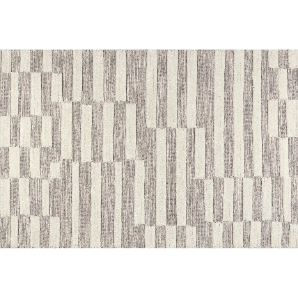 Handcrafted of soft, durable wool, this striped rug offers two looks in one. While one side features white stripes on a darker background, the reverse displays darker stripes on a pale background. A rug pad is recommended to help prevent slipping.