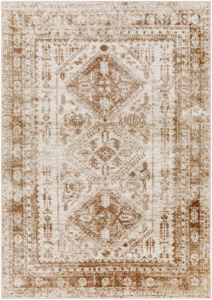 The Bisan rug offers a fresh take on traditional style, blending a refined palette with modern construction. The medium pile and tailored fringe fashion a soft touch, making this vintage rug design a versatile choice for living rooms or high-traffic spaces.