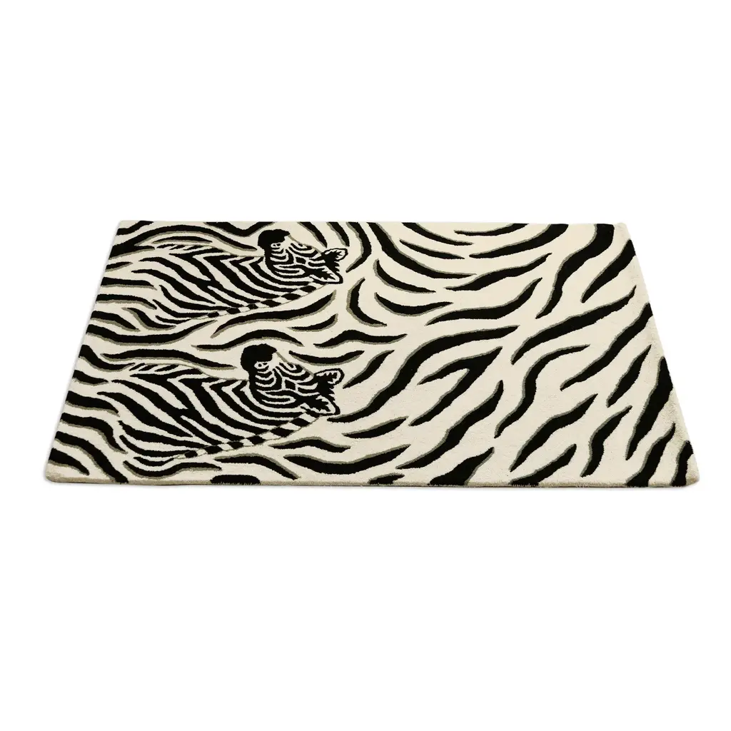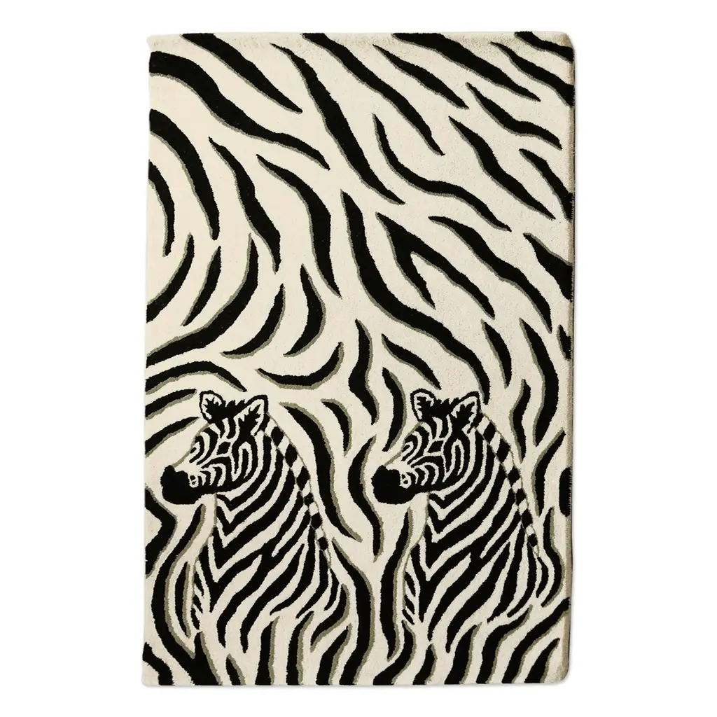 Black And Ivory Two Zebras Hand Tufted Wool Area Rug- Zebra Buddies