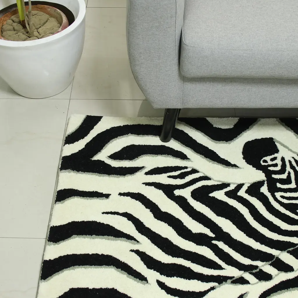 Add sophisticated style to any room with this gorgeous hand-tufted wool rug. Presented by India's Gopal Khaitan, this rug features a zebra motif in mesmerizing hues of black and ivory.
