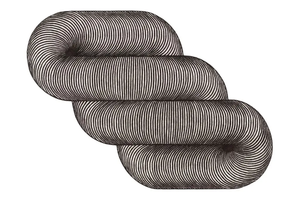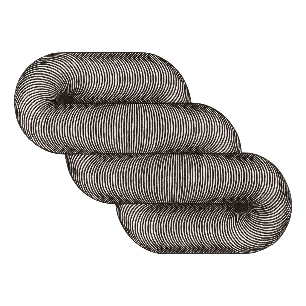 Black & White Giro Rug by Gandia BlascoDesign by MUT DesignDimensions: W 264 x H 363 cm. Materials: 100% wool.Weight: 34 kgPassion for life outdoors, a dream come true on the edge of a cliff in the north of Ibiza. The elemental and architectural geometry of our first outdoor furniture collection transcended borders thanks to its ability to respond to canons of timelessness and universality. Its refined, purely architectural design, made of aluminum profiles combined with polyethylene, opened up market niches that didn’t exist until then, confirming the expansion of the company to every continent. The essential design of architectural lines defines the personality of GANDIABLASCO’s furniture and pergolas collections, together with the concept of large collections. More than furniture, these are fresh and elegant products that complement each other to create environments where one can enjoy the outdoors, Mediterranean-style.