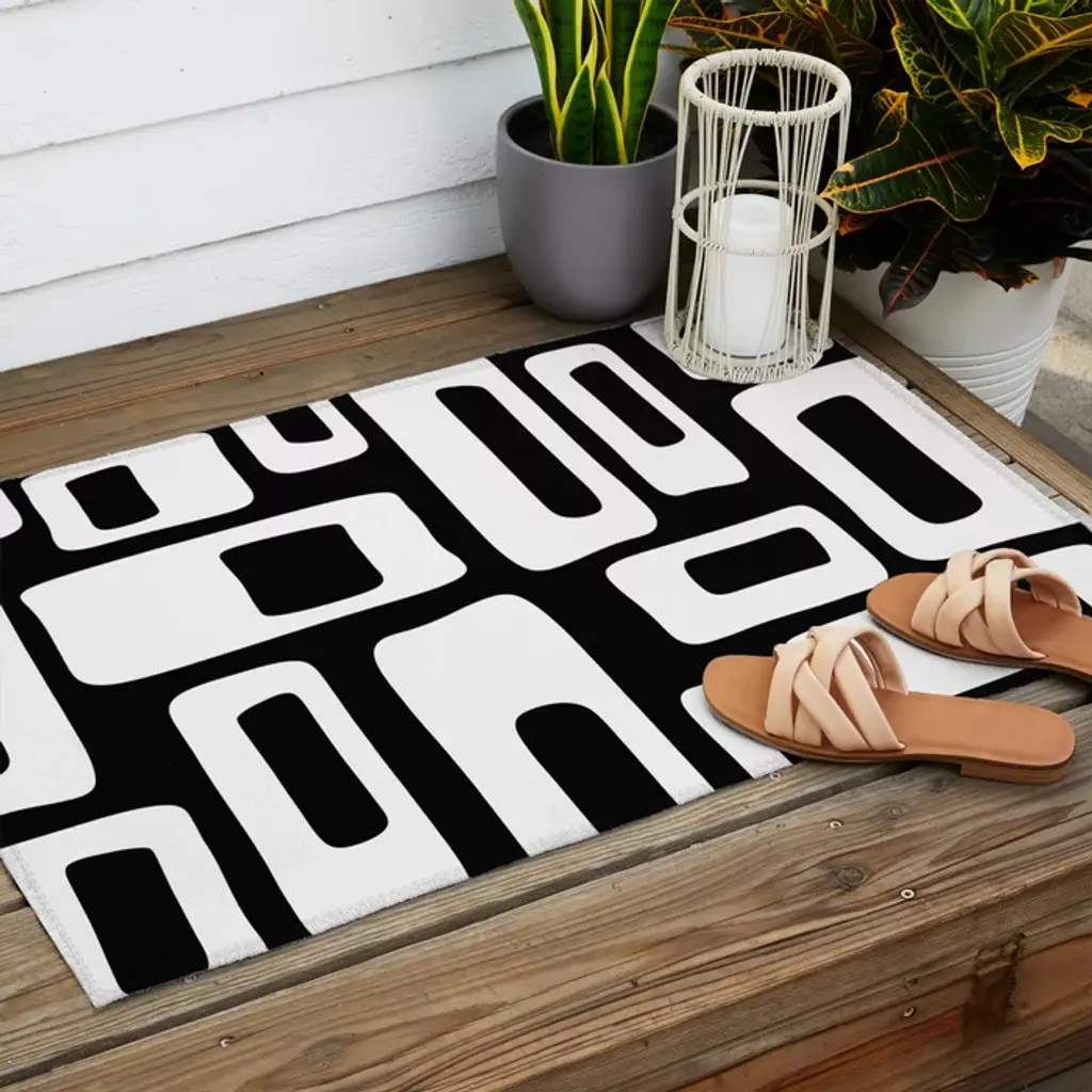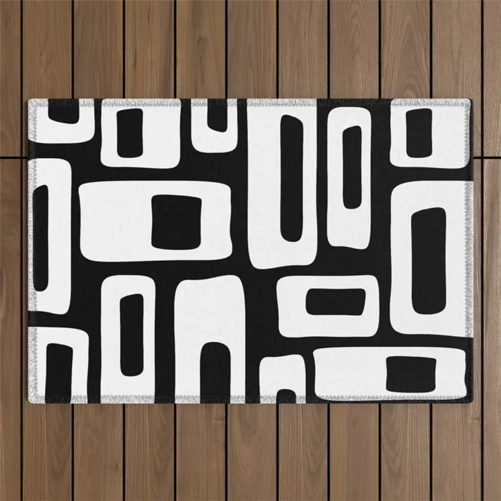Black And White Mid Century Modern Abstract Pattern 335 Outdoor Rug