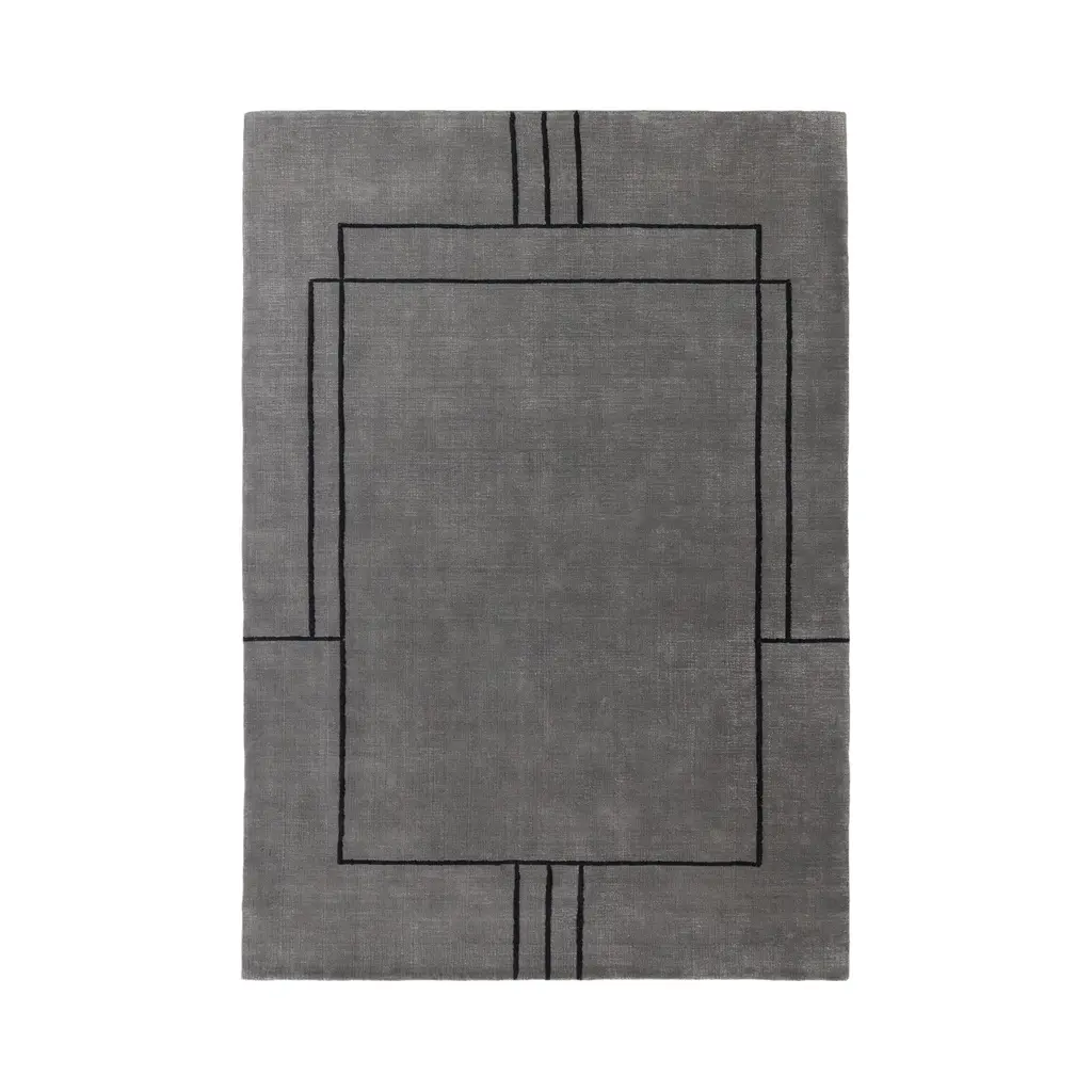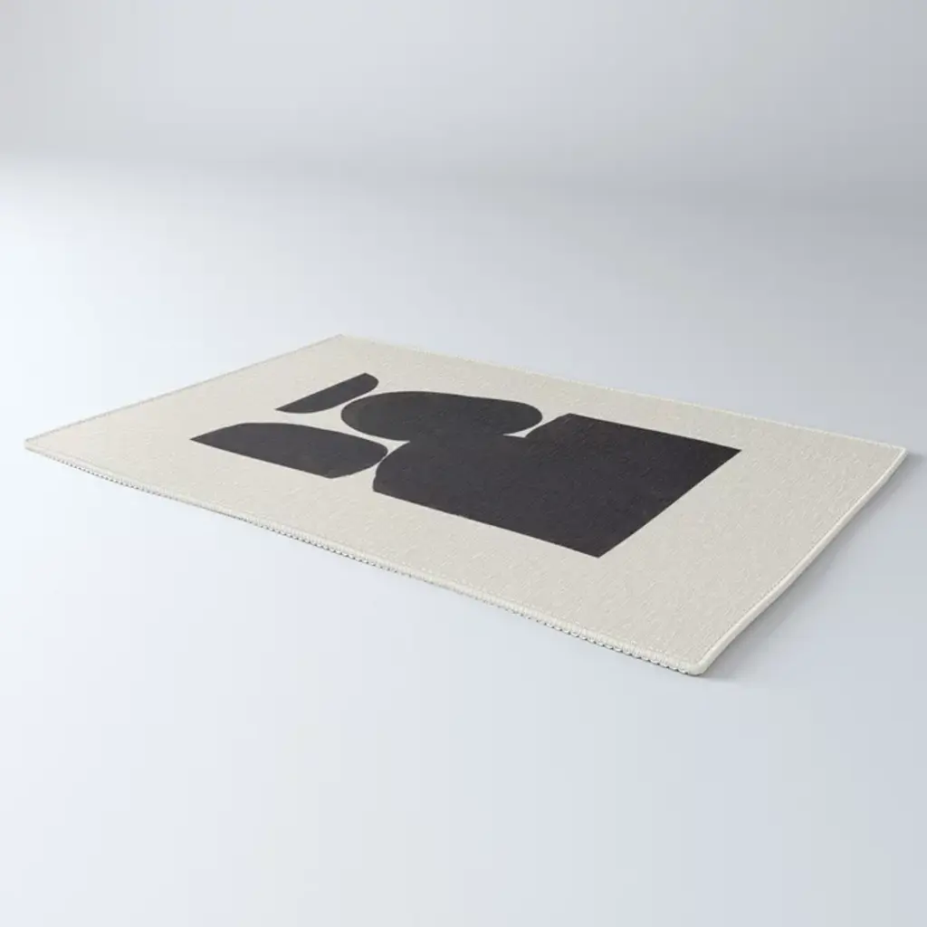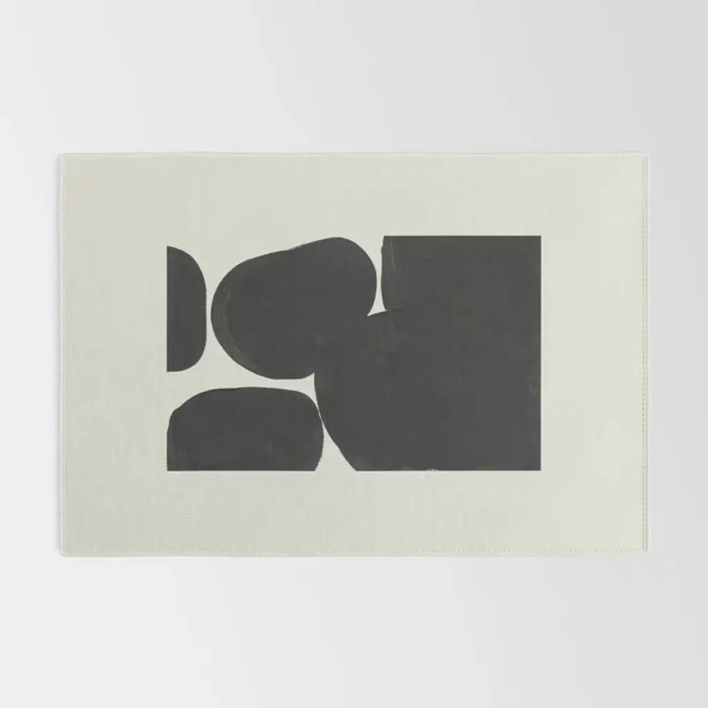 Black & White Minimalist Abstract Shapes Patterns Black Ink Painting Rug