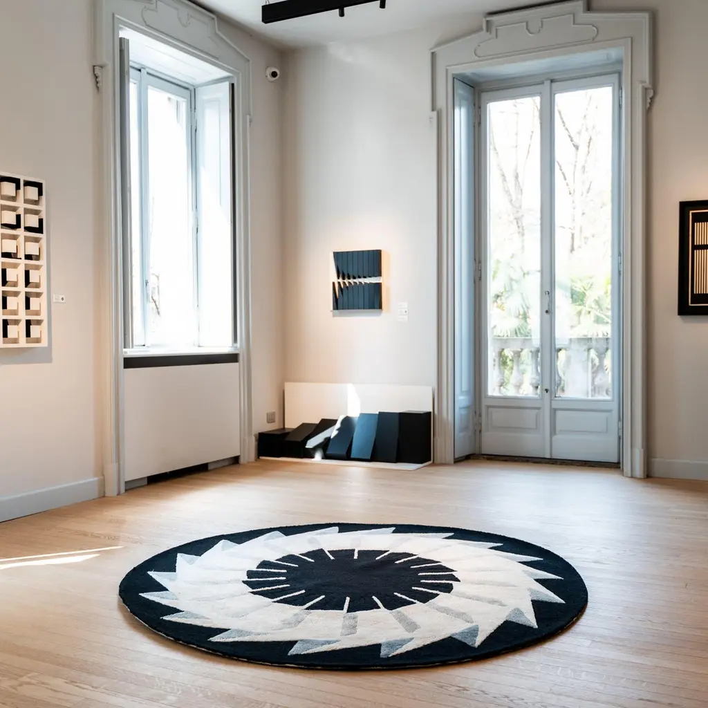 Passi nella Geometria, a striking collaboration between Marcello Morandini and Dinodo Studio, is a powerful entry in a limited-edition collection that transforms Morandini’s iconic geometric language into tactile form. Reflecting his lifelong exploration of structure, contrast, and perception, this piece channels visual rhythm into a harmonious expression of spatial abstraction.Expertly hand-tufted using a superior technique, it measures Ø8.2 ft (Ø250 cm) and is crafted from an elegant blend of wool, linen, and bamboo silk. The palette—black, stone, grey, and off-white—emphasizes sharp contrasts and subtle gradients, echoing Morandini’s meditative studies in balance and formal variation.Edition of 9 + 1 Artist Proof, accompanied by a Certificate of Authenticity, individually numbered and signed. Customizable in size while maintaining its aspect ratio, this piece brings a sculptural quality to contemporary interiors. A bold convergence of art, design, and philosophy.