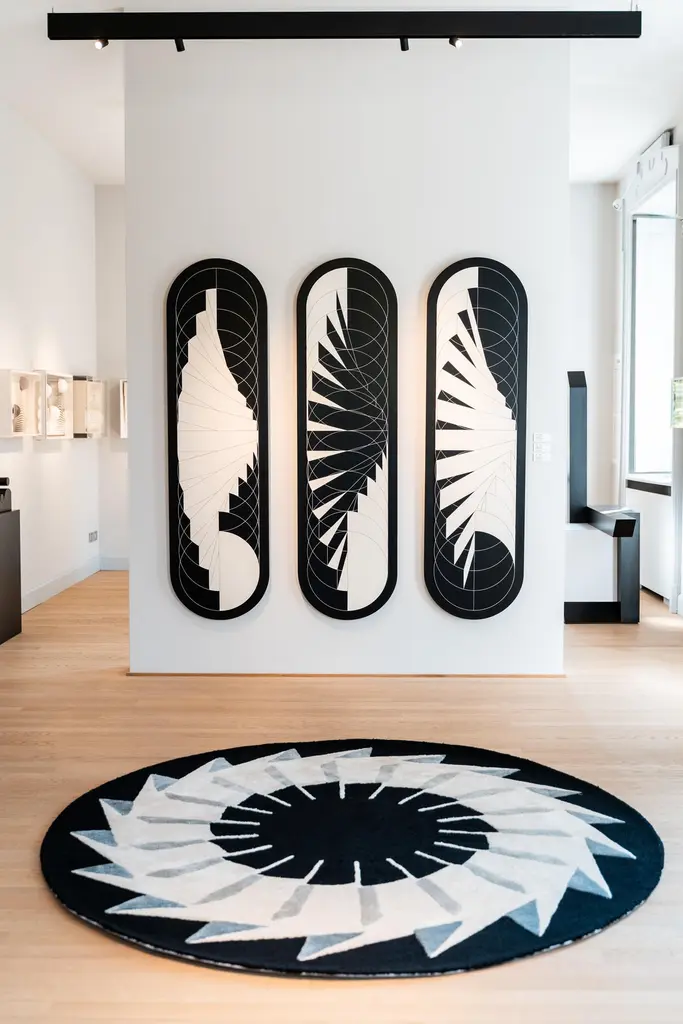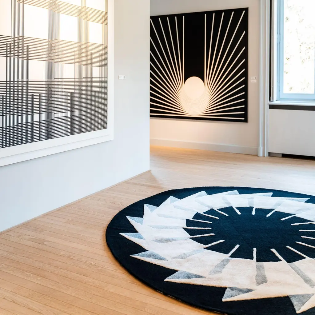 Passi nella Geometria, a striking collaboration between Marcello Morandini and Dinodo Studio, is a powerful entry in a limited-edition collection that transforms Morandini’s iconic geometric language into tactile form. Reflecting his lifelong exploration of structure, contrast, and perception, this piece channels visual rhythm into a harmonious expression of spatial abstraction.Expertly hand-tufted using a superior technique, it measures Ø8.2 ft (Ø250 cm) and is crafted from an elegant blend of wool, linen, and bamboo silk. The palette—black, stone, grey, and off-white—emphasizes sharp contrasts and subtle gradients, echoing Morandini’s meditative studies in balance and formal variation.Edition of 9 + 1 Artist Proof, accompanied by a Certificate of Authenticity, individually numbered and signed. Customizable in size while maintaining its aspect ratio, this piece brings a sculptural quality to contemporary interiors. A bold convergence of art, design, and philosophy.