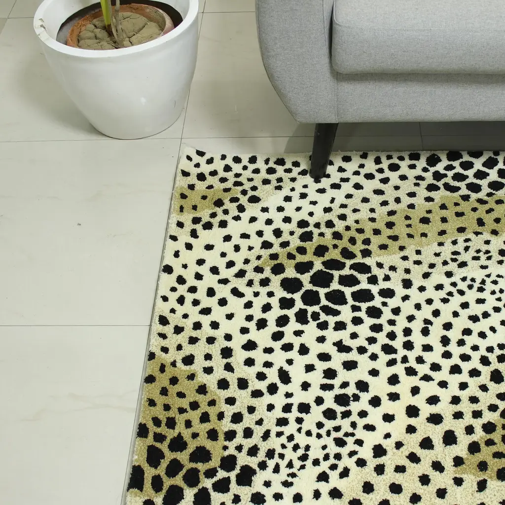 Black Brown And Beige Leopard Hand Tufted Wool Area Rug- Leopard Love