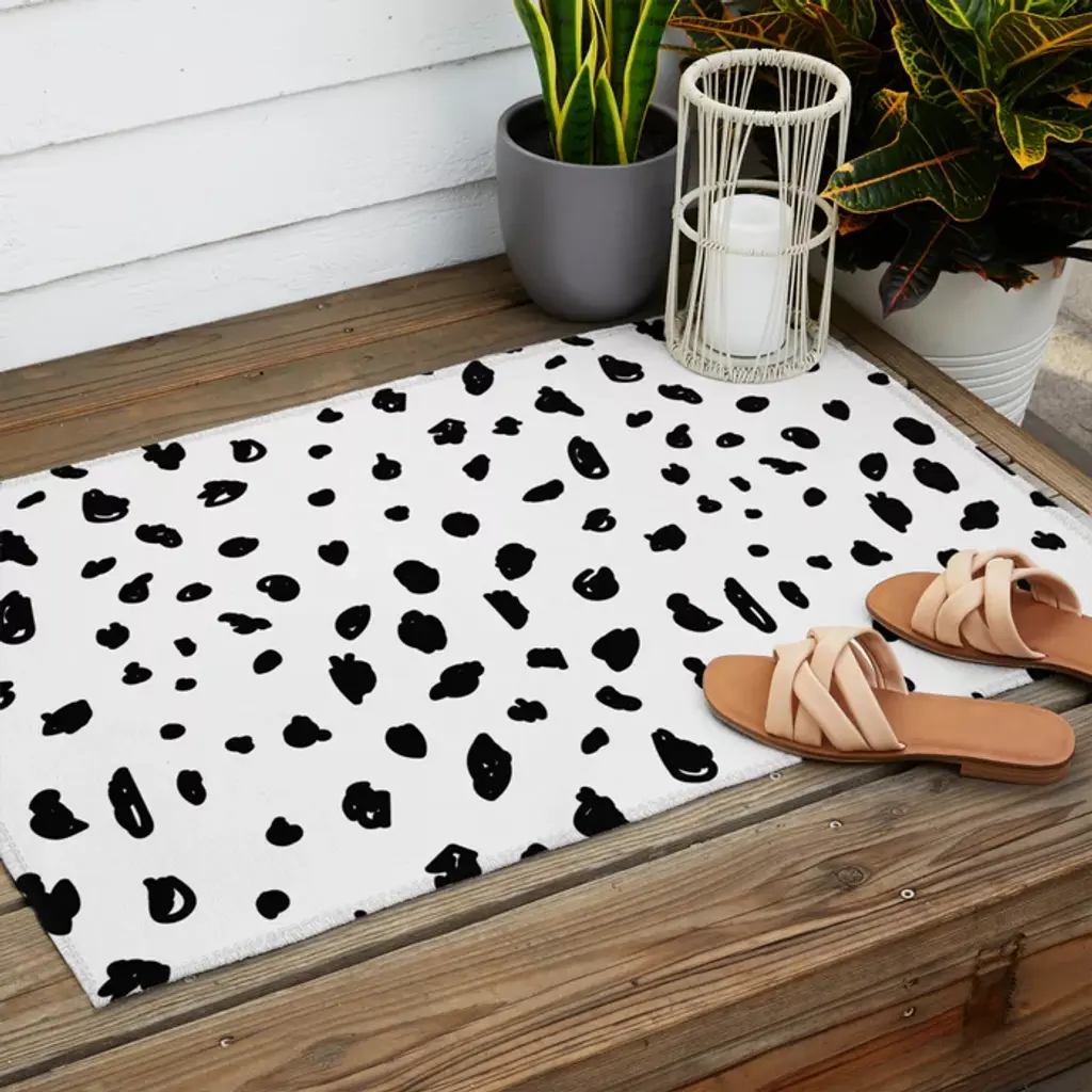Black Geometrical Hand Painted Polka Dots Confetti Pattern Outdoor Rug