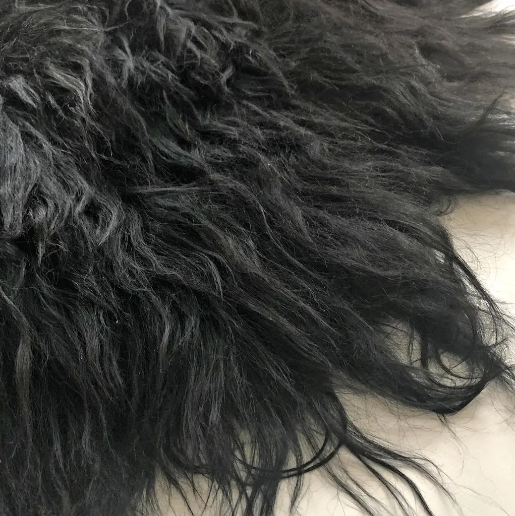 Black Sheepskin Rug, Black Icelandic Shaggy Long Wool