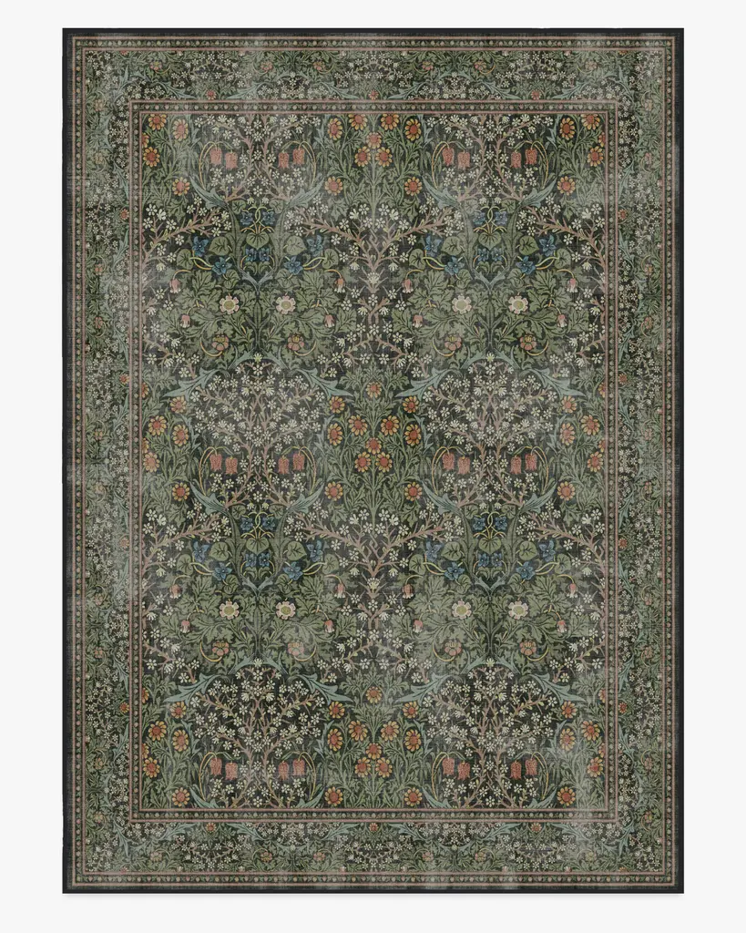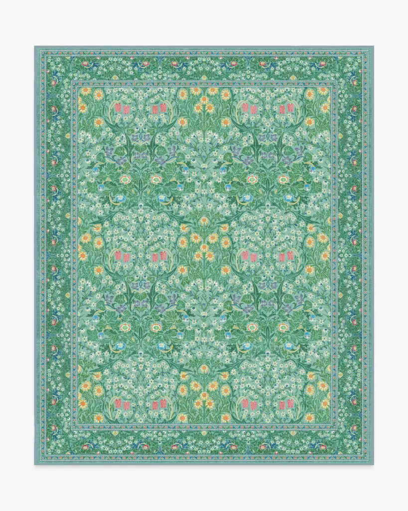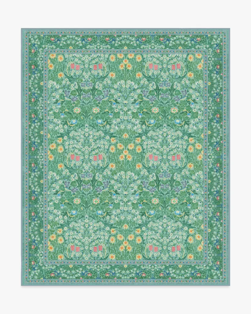 Fall in love with our whimsical Morris & Co. Blackthorn Multicolor Jade Rug. Originally designed for wallpaper by John Henry Dearle in 1892, this intricate weave of blossoms, blooms, and vines layers pops of bold pinks, sunshine yellows, playful greens, and vibrant blues for a cheerful composition. We have reimagined the classic pattern to include a border that anchors the design with a touch of formality and visual order. Water-resistant, stain-resistant, and machine-washable. Rug colors may vary slightly according to your device and the lighting in your space.