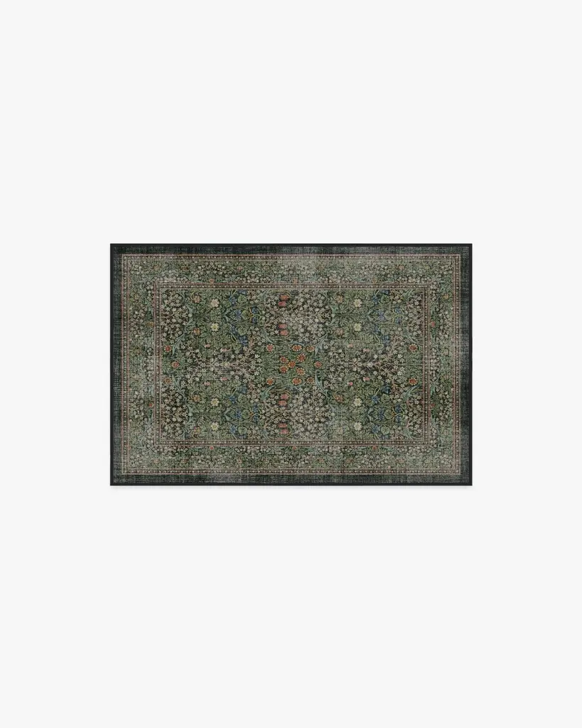 Fall in love with our whimsical Morris & Co. Blackthorn Multicolor Jade Rug. Originally designed for wallpaper by John Henry Dearle in 1892, this intricate weave of blossoms, blooms, and vines layers pops of bold pinks, sunshine yellows, playful greens, and vibrant blues for a cheerful composition. We have reimagined the classic pattern to include a border that anchors the design with a touch of formality and visual order. Water-resistant, stain-resistant, and machine-washable. Rug colors may vary slightly according to your device and the lighting in your space.