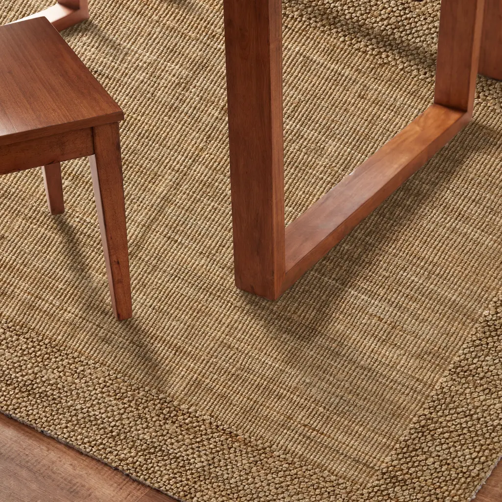 Framing a soft flatwoven field with a bold basketweave border, our Blake 6x9 area rug features an amazing contrast of jute textures. Evolving beyond typical natural-fiber rugs with its artisan quality, this handwoven centerpiece is perfect for arranging with a rectangular dining table. Offering the signature high and low textures of renewable jute in one stunning piece, Blake is an incredible value of durability, versatility and underfoot feel.